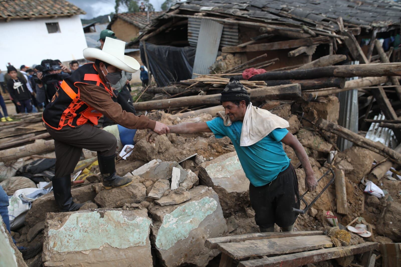 "Hemos orientado para que nuestro gabinete y los ministerios atiendan no solo a Jalca Grande sino a los lugares donde este terremoto ha cobrado muchos daños", dijo el presidente Pedro Castillo en el distrito de Jalca Grande de Amazonas, donde la mayoría de las casas, de adobe y barro, colapsaron por el sismo.