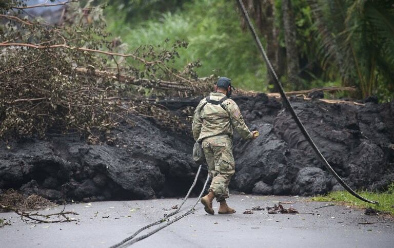 El pasado sábado miles de personas huyeron de sus hogares por el terremoto de magnitud 6,9 del día anterior, que no dejó heridos. La Guardia Nacional de Hawái desplegó unos 70 soldados y aviadores para trasladar a los evacuados a albergues comunitarios.