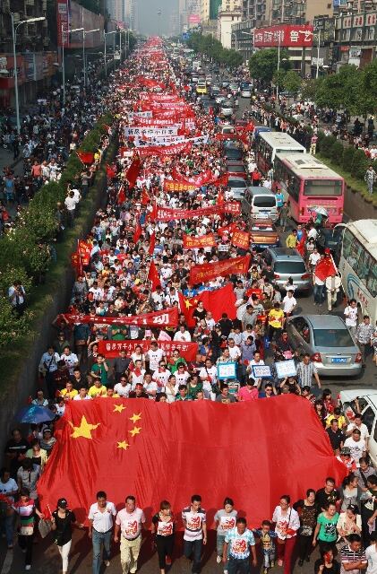 La marcha duró mañana y tarde, bajo el control de centenares de policías militares equipados con casco y escudo. La causa: la reciente decisión de Japón de nacionalizar un pequeño archipiélago en el mar de China Oriental y reivindicadas por China .