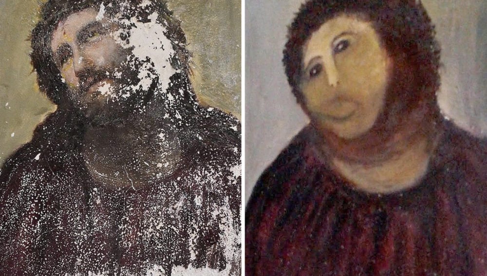 El episodio que marcó su vida ocurrió cuando intentó restaurar el fresco original del pintor Elías García Martínez en el santuario de Borja, en Zaragoza, España. Aunque siempre sostuvo que su trabajo estaba inconcluso, el resultado —con rasgos simples y desdibujados— desató una avalancha de memes y reacciones en redes sociales a escala global.