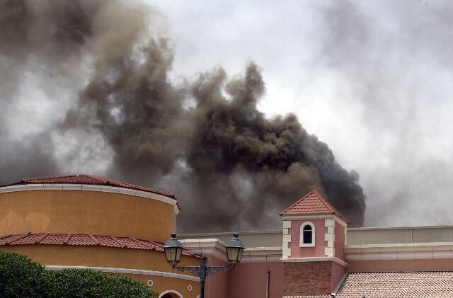 En imágenes difundidas por la televisión catarí, era visible una gran nube de humo negro por encima del edificio del Villagio Mall.