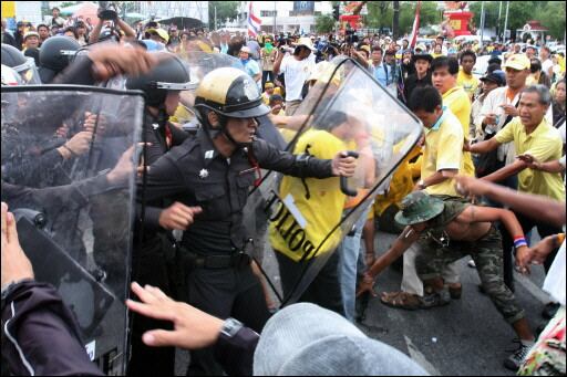 En cuanto a los incidentes en la capital tailandesa, éstos ocurrieron en la noche del jueves al viernes, cuando los manifestantes que ocupan la "Casa de Gobierno" trataron de obligar a un millar de policías a abandonarla.