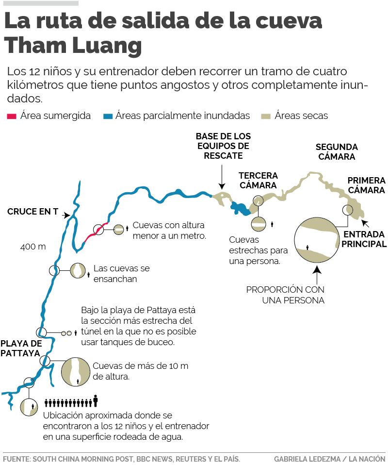 Las autoridades se negaron en un primer momento a dar detalles sobre el desarrollo de la operación de rescate. ¿Cómo pudieron salir los niños, que no tenían ninguna experiencia de buceo, de la cueva con túneles inundados, pasos estrechos y sin visibilidad? ¿Cómo lo hicieron si un buzo tailandés murió por falta de aire durante los preparativos de la evacuación?