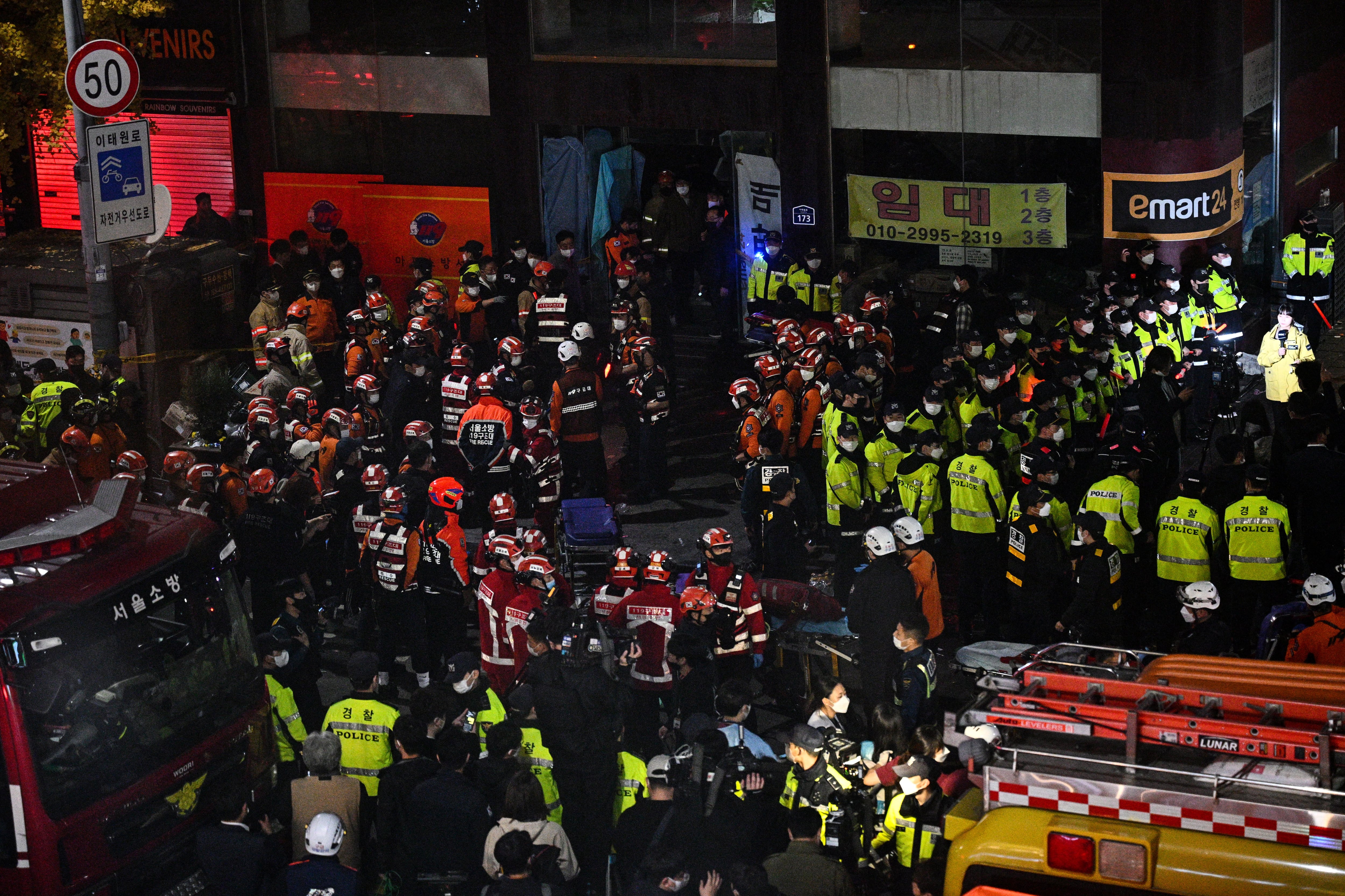 El presidente surcoreano, Yoon Suk-yeol, ordenó enviar equipos de primeros auxilios al lugar y pidió que los hospitales se preparasen para recibir a los heridos. Fotografías publicadas por Yonhap mostraron a más de una decena de personas tendidas en una calle y socorristas dando masajes cardíacos a algunas de ellas.