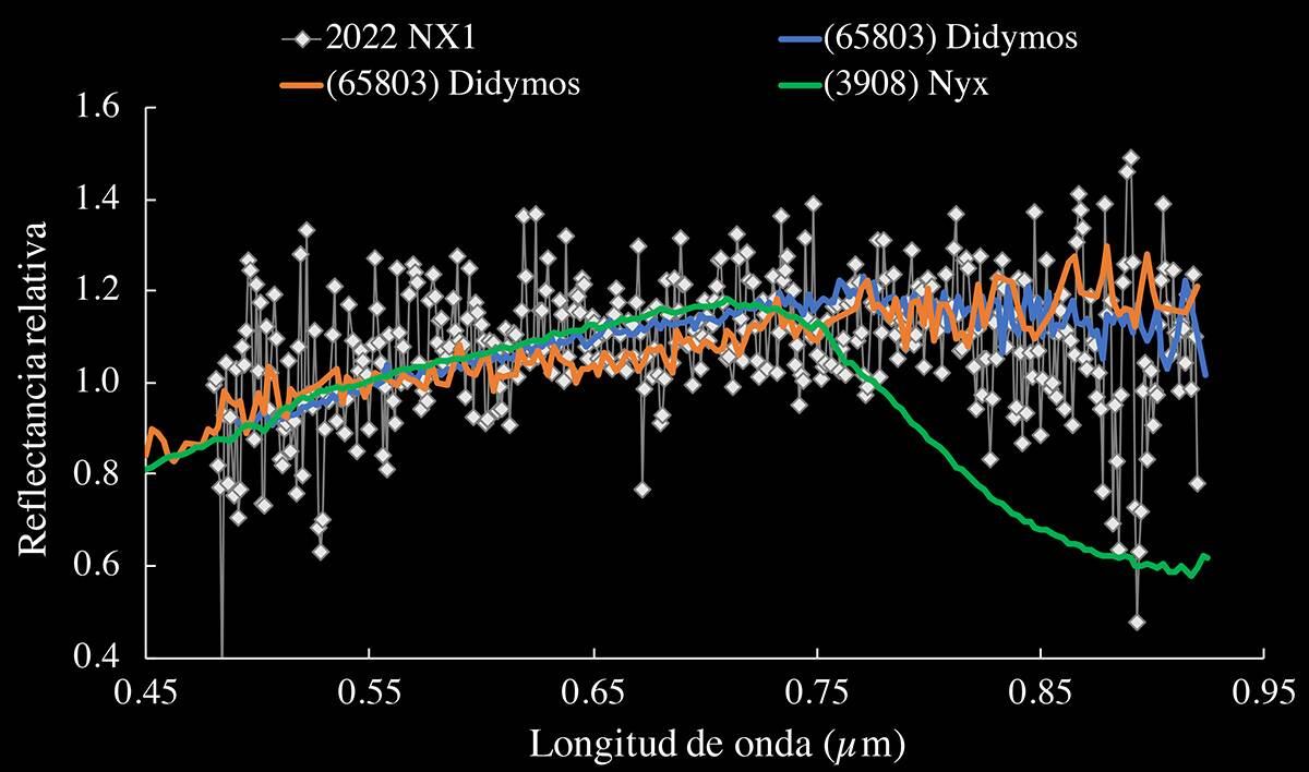 Los resultados, publicados ahora en la revista Astronomy & Astrophysics, confirman que se trata de un asteroide con unas características superficiales incompatibles con material de origen lunar. El albedo (radiación reflejada) deducido a partir de su espectro indica que su tamaño está entre los 5 y 15 metros y, respecto a su composición, podría ser tanto de tipo rocoso como uno con mayor contenido en metales.