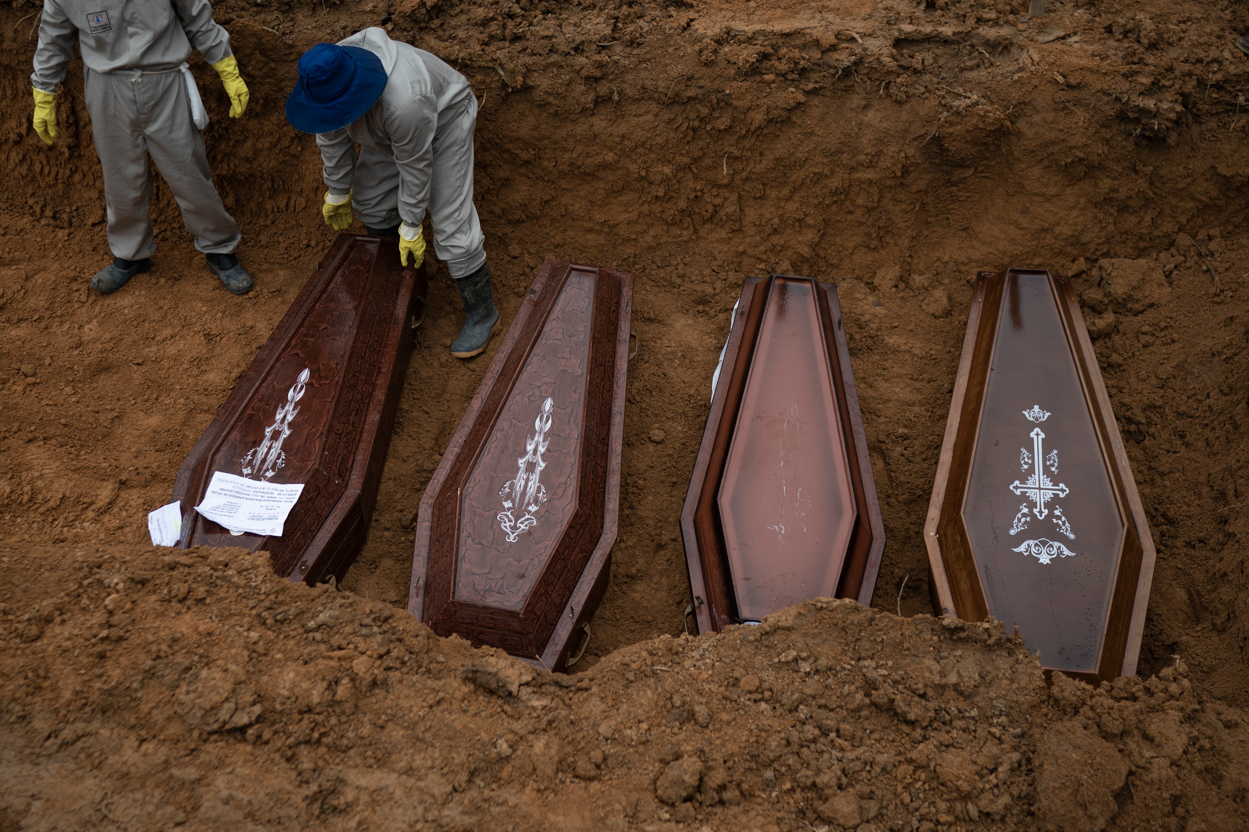En Brasil, la mayor cantidad de muertes acumuladas para agosto se esperan en São Paulo, con 36.811 (11.097 a 81.774), y en Río de Janeiro, con 21.073 (5.966 a 51.901). La covid-19 causará al menos 9.401 fallecimientos acumulados en Pernambuco; 8.679 en Ceará; y 5.039 en Amazonas.