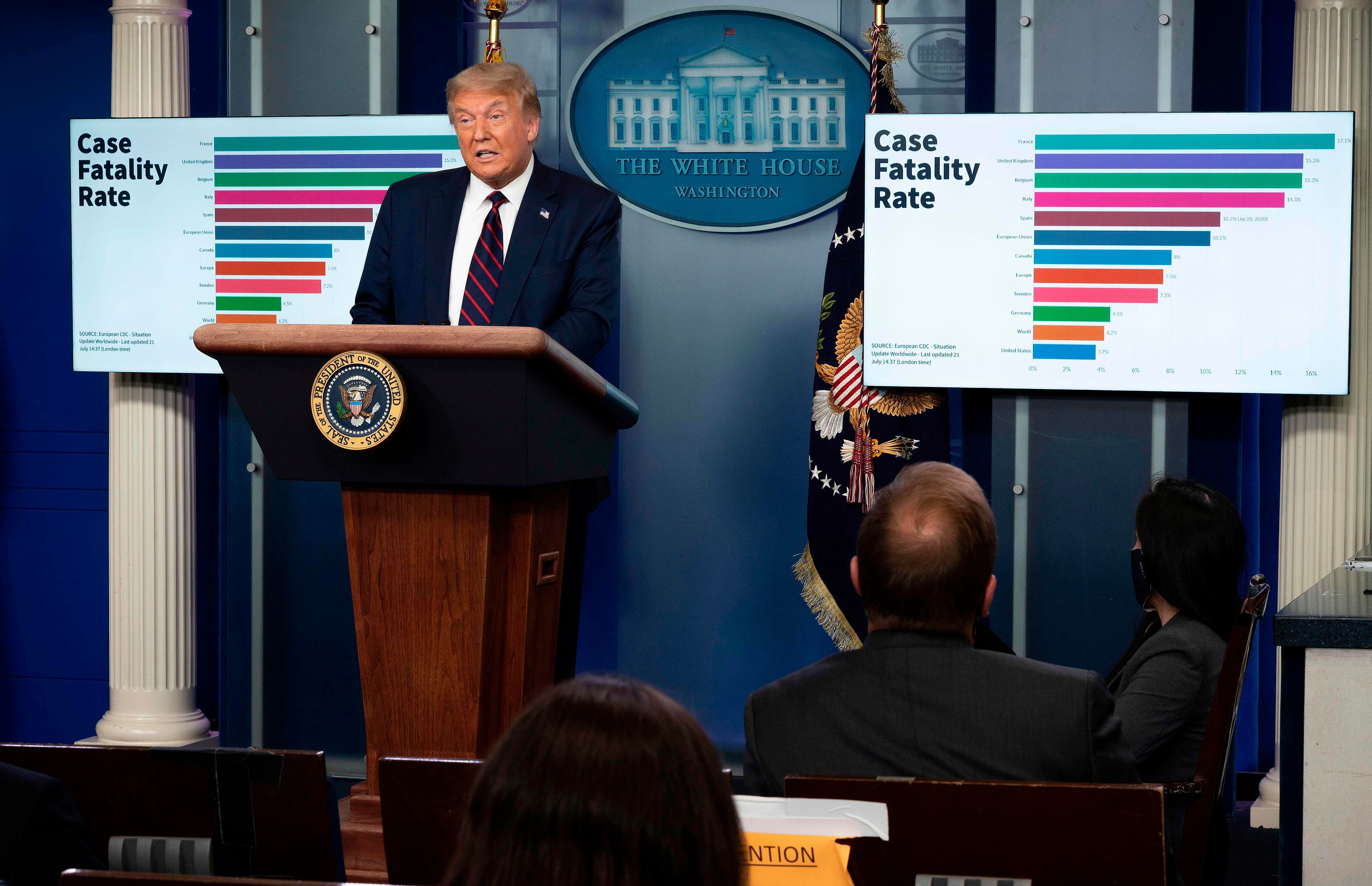 "Probablemente y desafortunadamente va a empeorar antes de que haya una mejora", dijo Trump antes de efectuar un llamado a los estadounidenses para que utilicen la mascarilla cuando no sea posible mantener un distanciamiento físico.