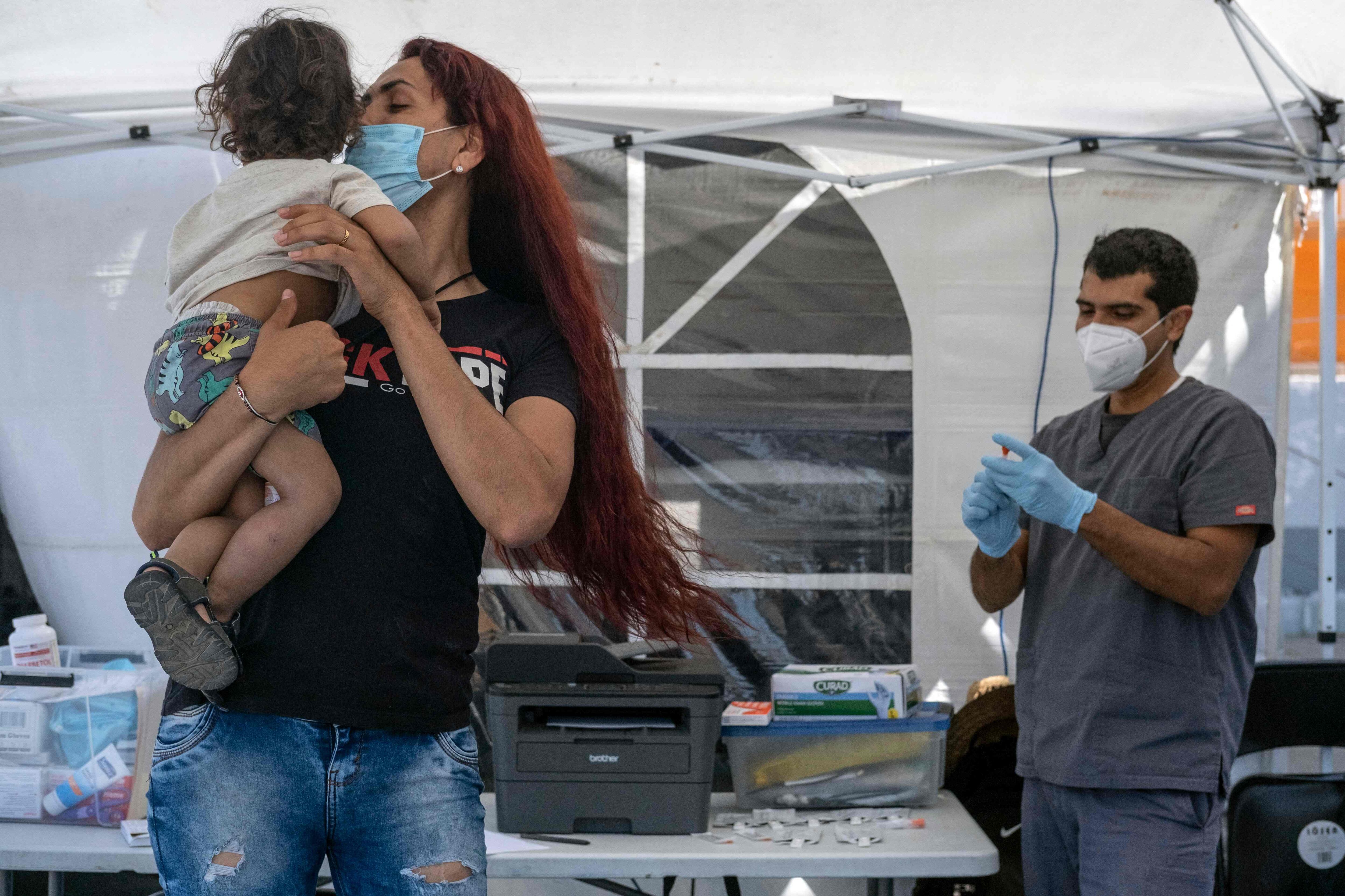 En el campamento, donde abundan los rostros de cansancio e incertidumbre, Brigitte proyecta calidez mientras ayuda a los migrantes a tramitar papeles. Incluso se da tiempo de chocar puños y palmas con una pequeña, robándole una sonrisa y levantando el ánimo de su papá.