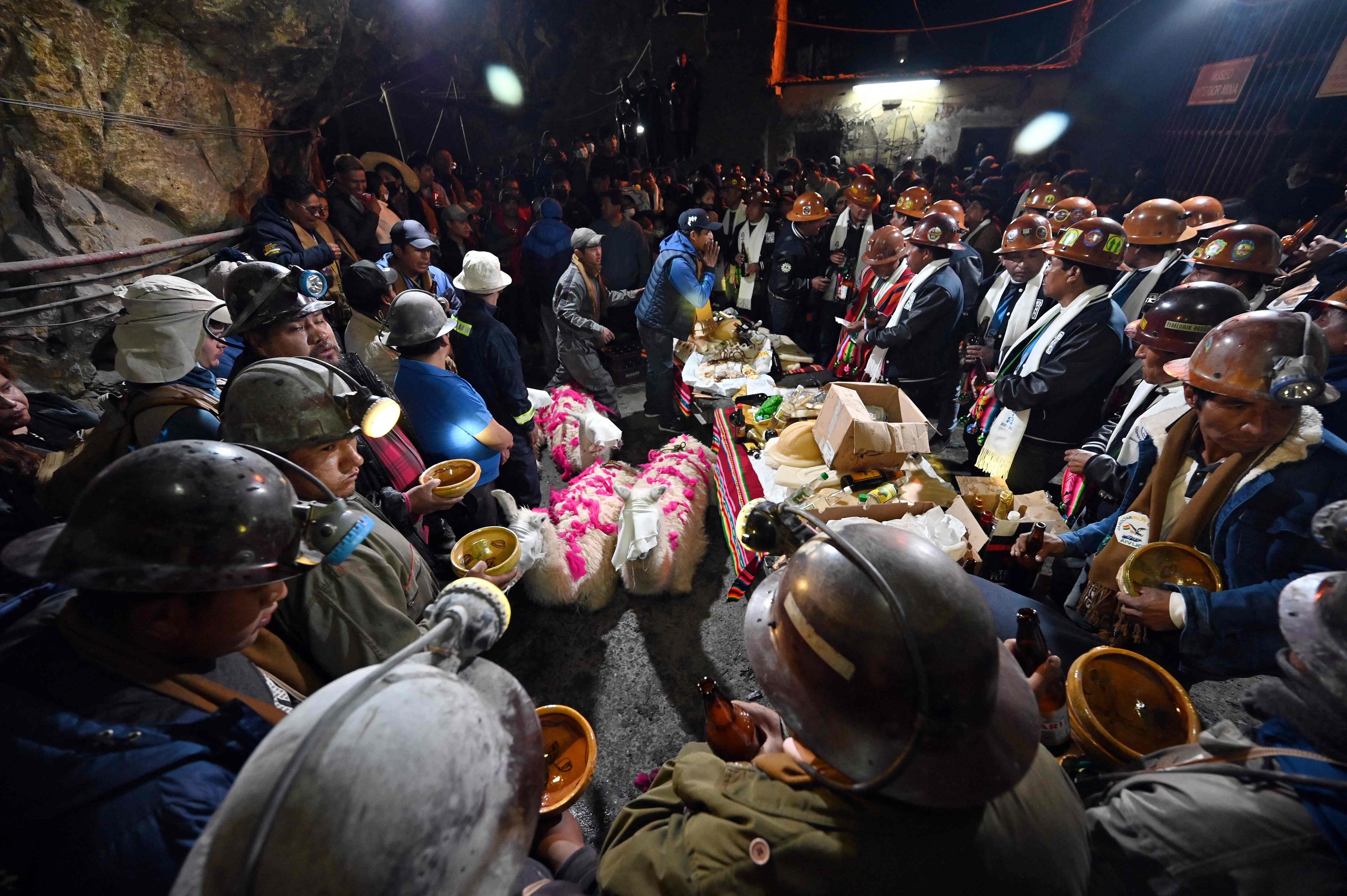 “¡Lo haremos con fe!”. La voz del presidente de la cooperativa minera Nueva San José retumba dentro del socavón. Espera que la ofrenda provea más plata, estaño y zinc en el cerro que explotan desde hace 20 años a las afueras de la ciudad de Oruro, en el oeste de Bolivia.