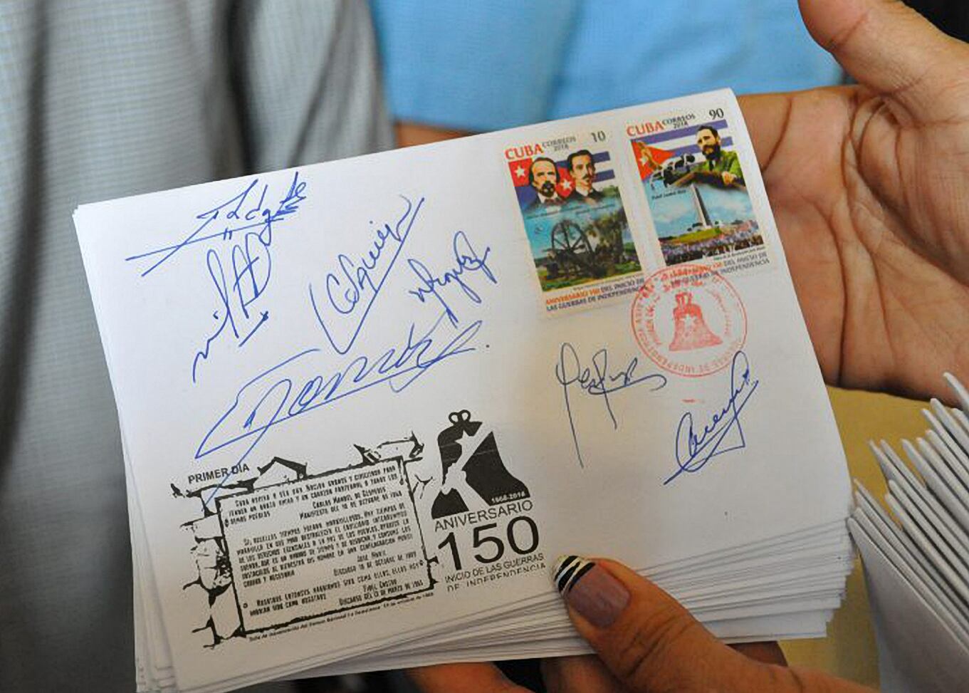 La emisión de este sello postal forma parte de la conmemoración nacional por el 150 aniversario del inicio de las luchas de independencia de la corona española, el 10 de octubre de 1868, detalló el ministerio.