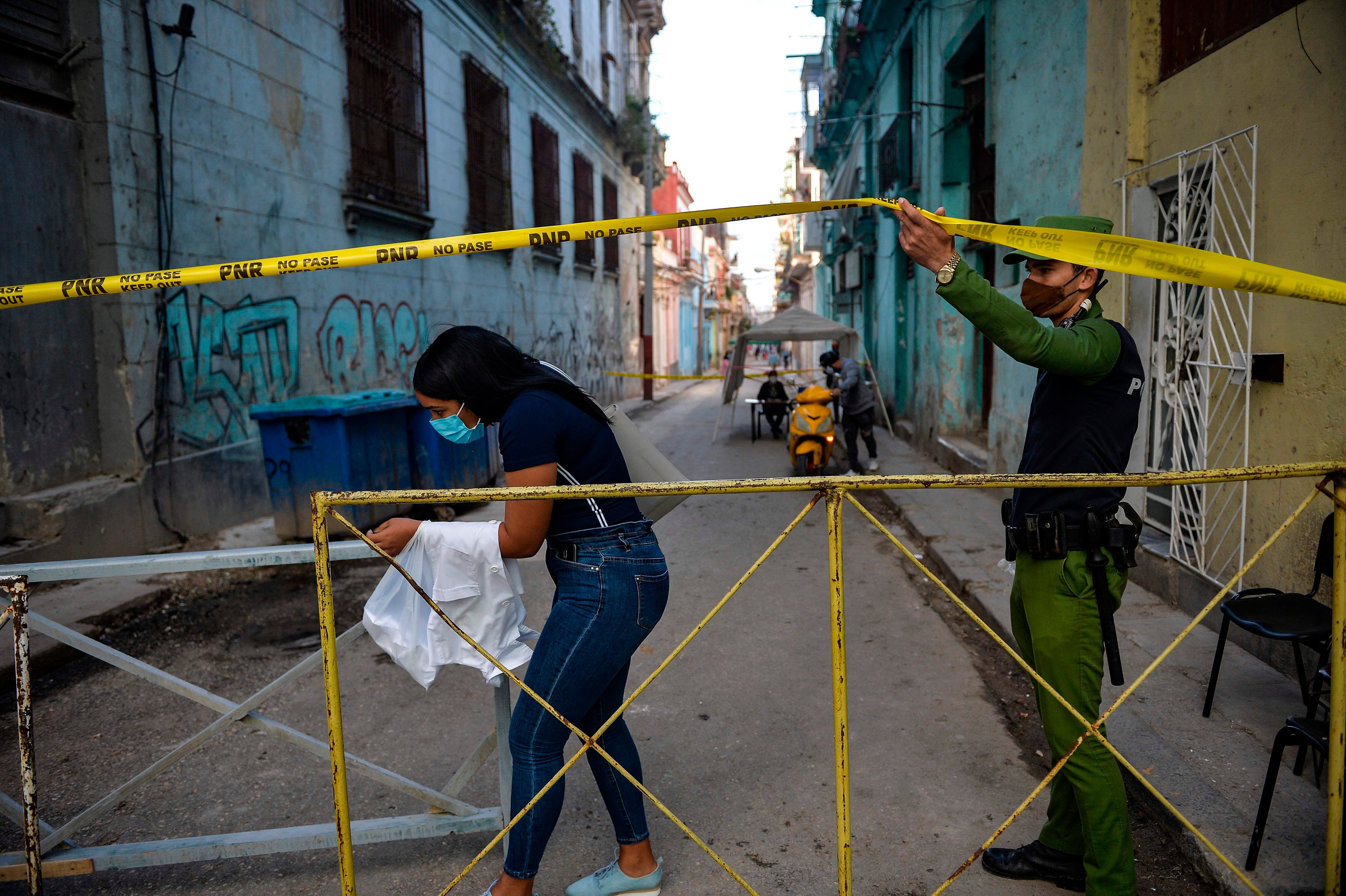La Habana. Las cintas amarillas de la Policía rodean un barrio de 12.000 habitantes puesto en cuarentena y La Habana está bajo toque de queda: Cuba enfrenta un repunte de los casos de covid-19, aunque sigue siendo un país aventajado en la lucha contra el coronavirus en América Latina.
