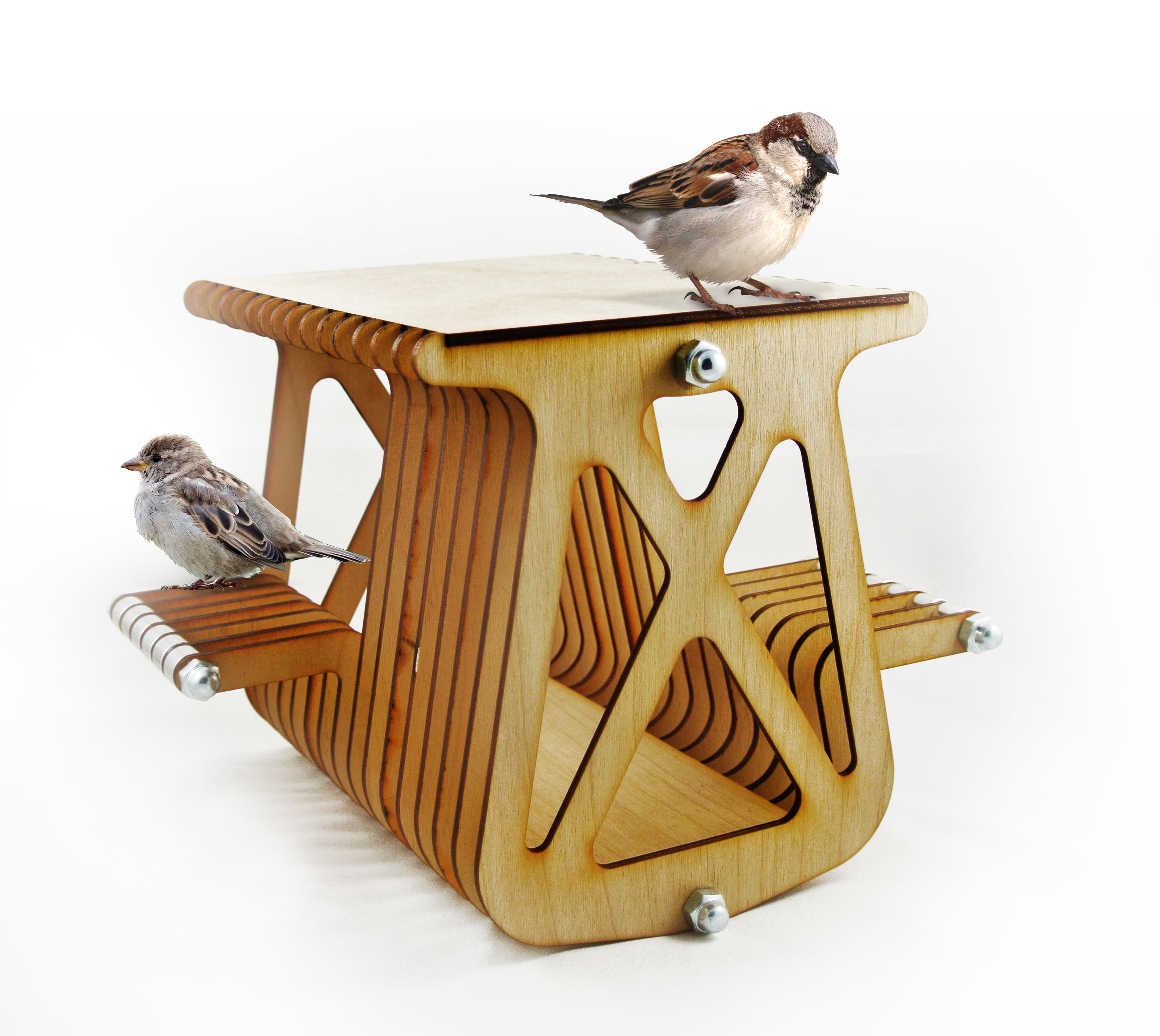 Otro de sus creaciones es una casa del pájaro –sin rejas- hecha de plywood y aluminio para quienes tienen en sus hogares este tipo de mascota.