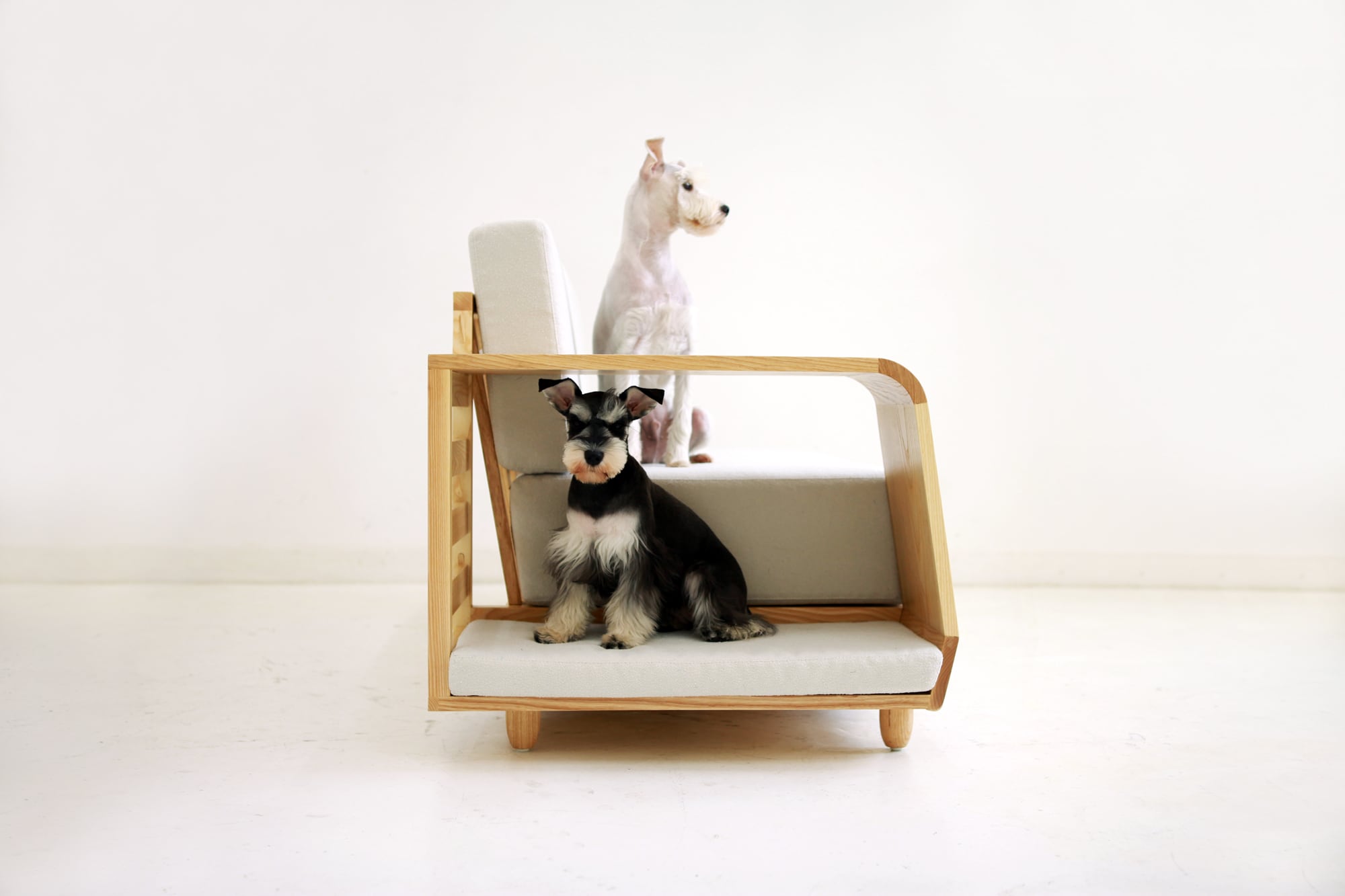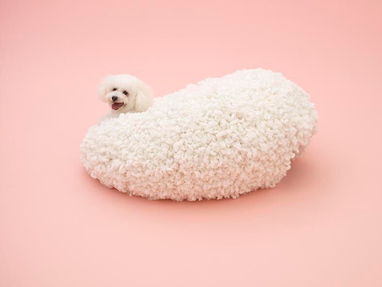 Por ejemplo, Sejima creó un almohadón blanco, suave y cómodo para los perros de raza bichon frisé.