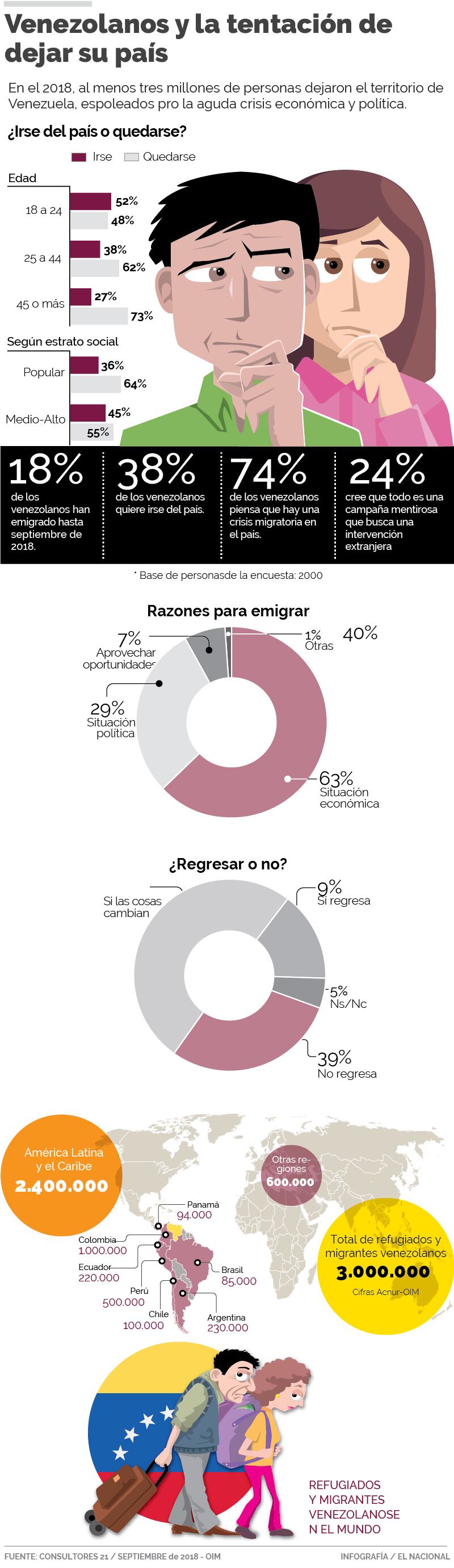 Empujados por la peor crisis económica, política y social en décadas, más de tres millones de venezolanos dejaron su país y prefirieron buscar un mejor futuro en tierras extrañas. El éxodo, que según Naciones Unidas sumará más de 5 millones de personas en el 2019, impacta en todas las dimensiones a los países del vecindario, desacostumbrados a ser receptores de un flujo migratorio de esta envergadura, que sin dudas es el mayor en décadas en esta parte del mundo.