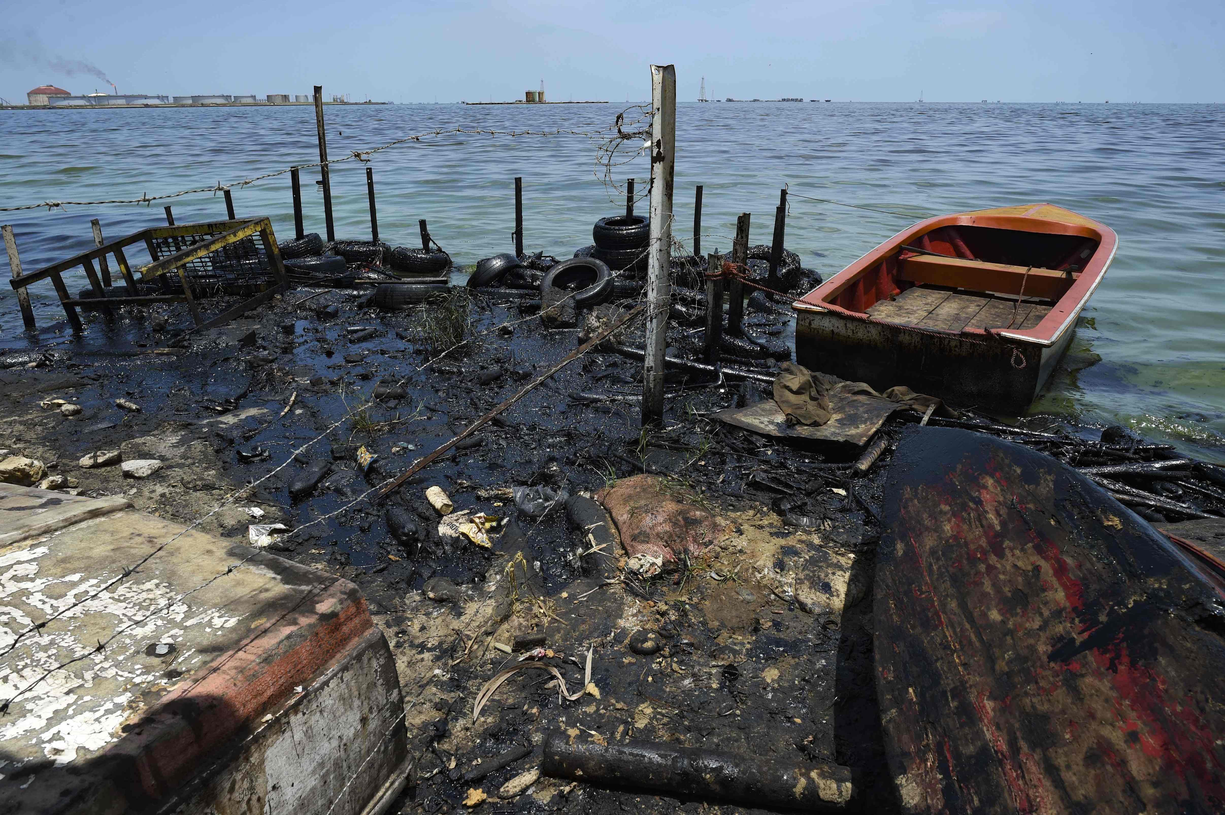 “Mira, a causa del viento del sur el petróleo está en todas partes”, se lamenta Paul, un pescador de Cabimas, cerca de la orilla oriental de este lago, una extensión de agua de 13.200 km² que se conecta por un estrecho con el mar Caribe.