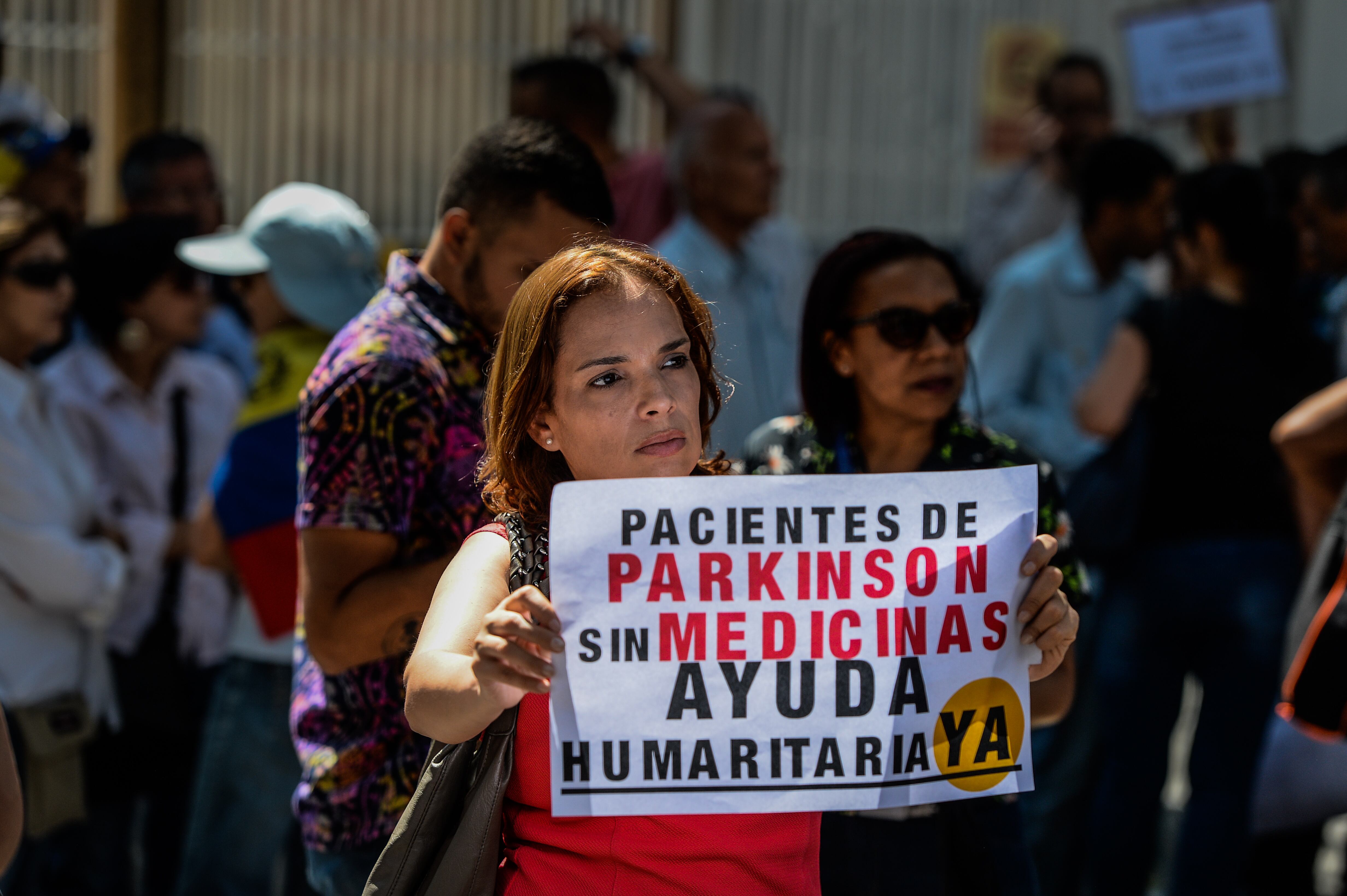 Frecuentes protestas de pacientes y sus familiares exigen un “canal humanitario” para la entrada de medicinas, a lo que se opone el gobierno de Nicolás Maduro alegando que detrás se esconde un plan de ocupación extranjera para derrocarlo.
