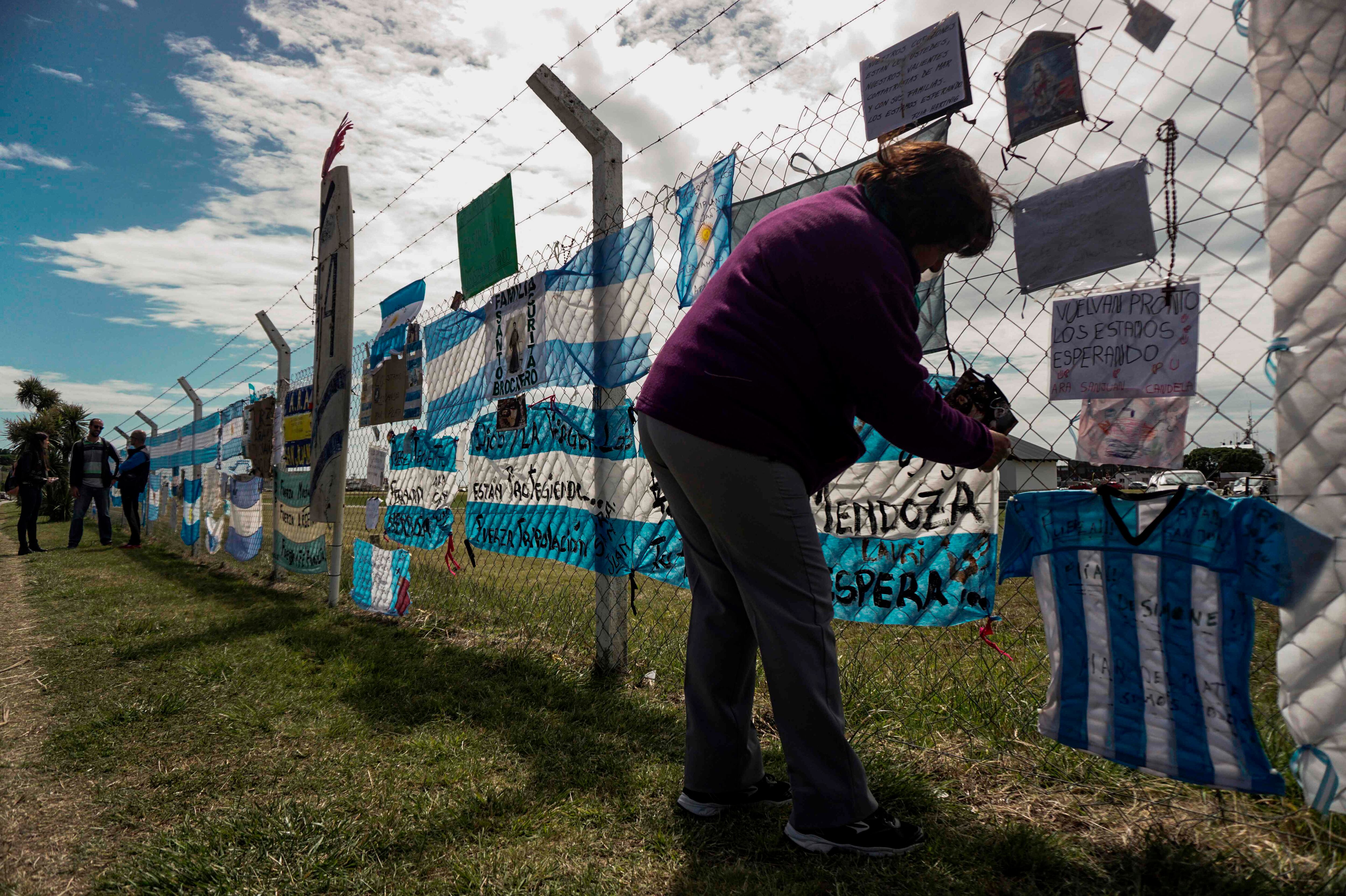 Los parientes portaron una gran bandera argentina con la leyenda "íSíganlos buscando!", una súplica que se inició días después de la desaparición del sumergible, el 15 de noviembre, y que se acentuó cuando cesaron los rastrillajes en el Atlántico Sur. El gobierno da por muertos a los marinos.