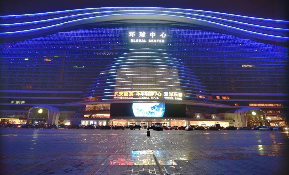 Dos centros comerciales, un parque de atracciones, un hotel, una universidad, una pista de patinaje... todo eso y más cabe en el Global Center, el mayor edificio del mundo, situado casi en el centro geográfico de China y que muestra la pasión del país oriental por construir a lo grande.