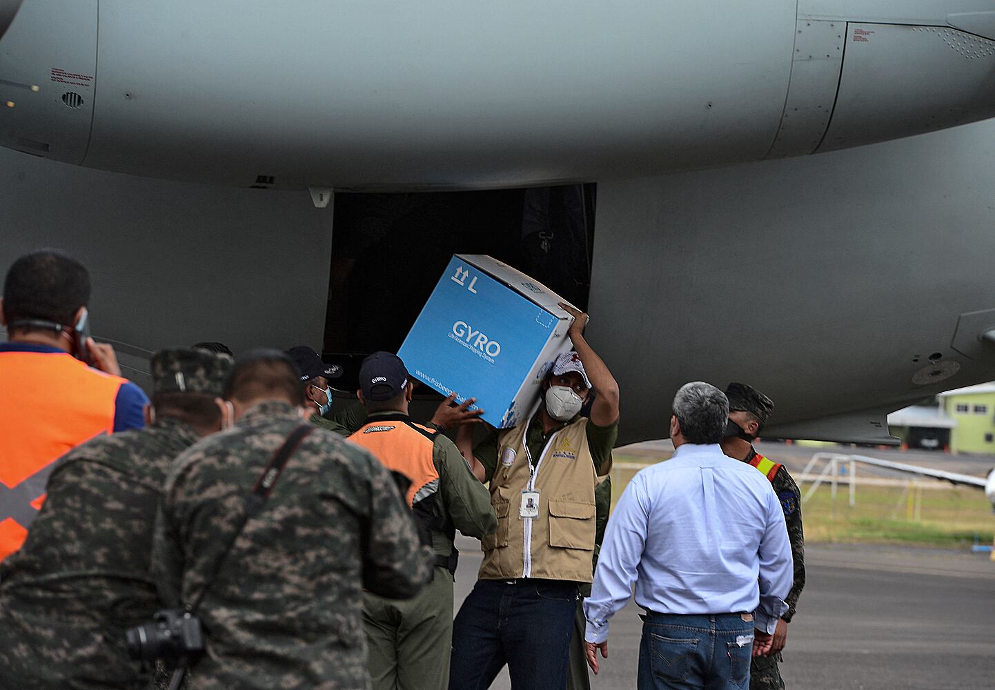 El avión presidencial hondureño transportó la carga desde Tel Aviv, que fue recibida por las autoridades de Honduras y el vicecanciller de Guatemala, Eduardo Hernández, en el aeropuerto de Toncontín, en el sur de Tegucigalpa.