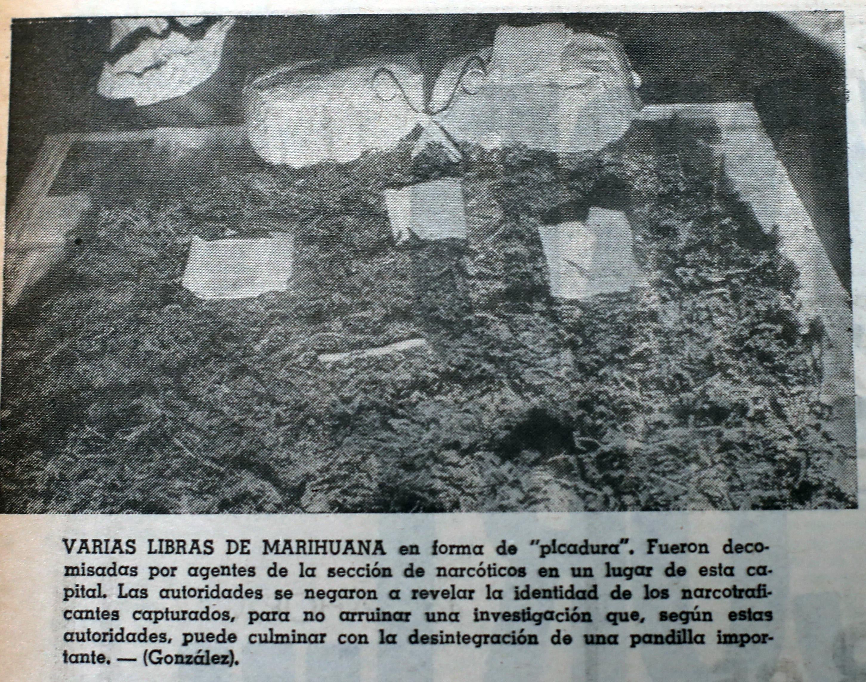 La policía de narcóticos informó que en un lugar de esta capital sus agentes decomisaron una fuerte cantidad de marihuana. Calcularon -según se dijo- que el decomiso puede ser de unas cuatro libras.