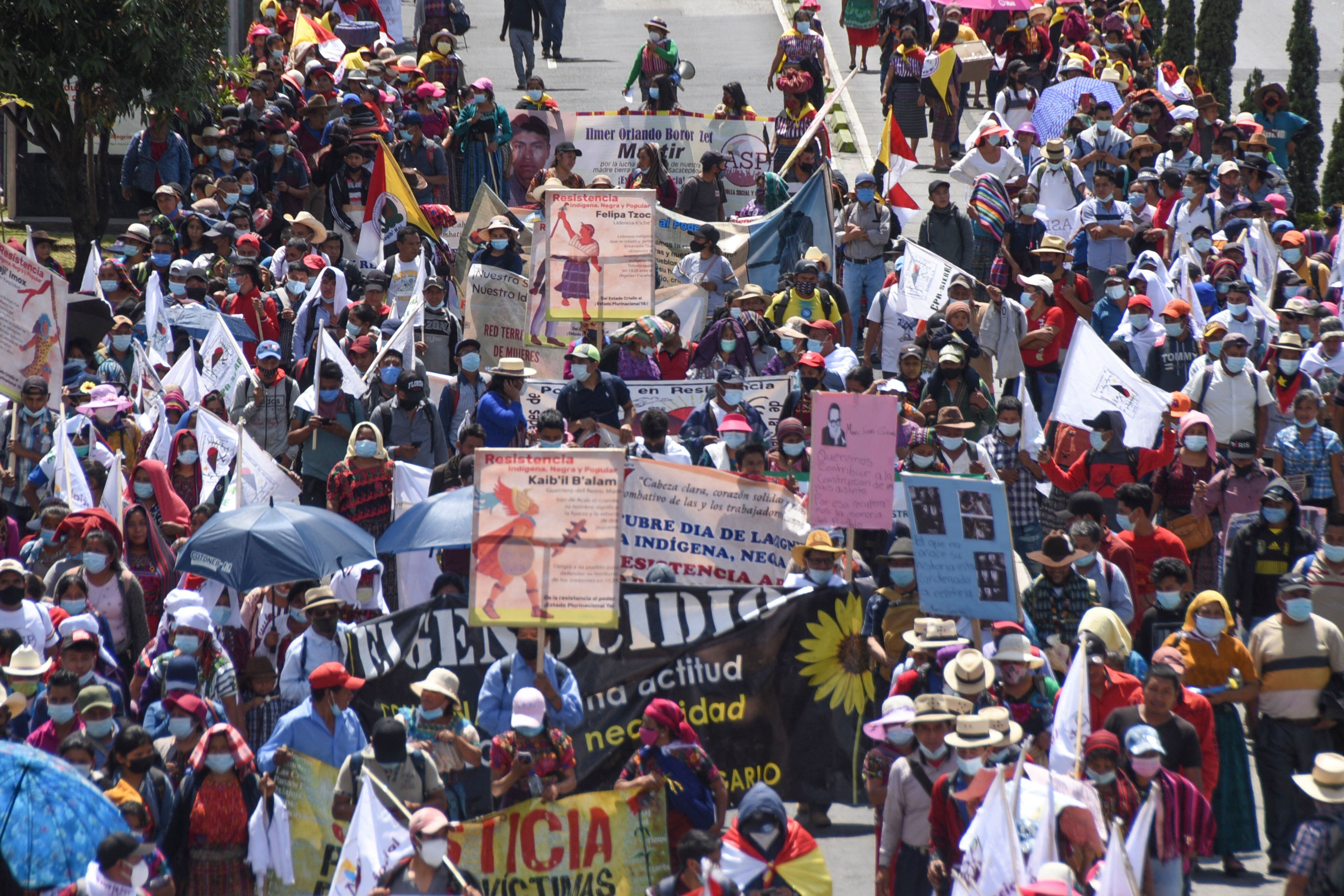 Durante el recorrido, de unos tres kilómetros hacia el antiguo Palacio de Gobierno en el centro histórico de Ciudad de Guatemala, también levantaron gritos de "de la resistencia al poder" y "de un estado criollo a un estado plurinacional".