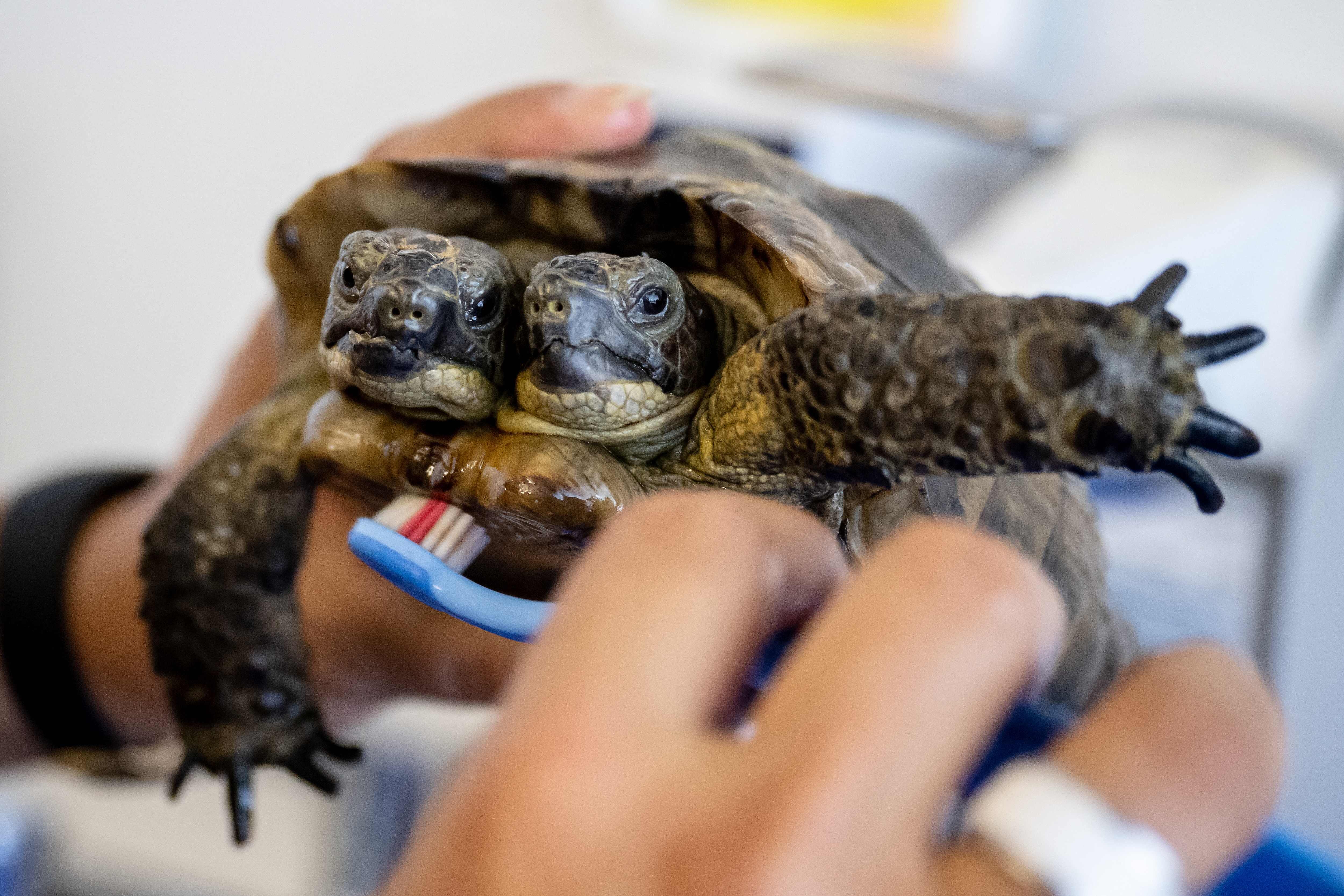 Ginebra. Janus, la tortuga bicéfala más vieja del mundo, recibió flores comestibles por su cumpleaños número 25. La celebración se llevó a cabo en el Museo de Historia Natural de Ginebra, Suiza, donde vive. El quelonio, que lleva el mismo nombre que el dios romano de dos caras, tiene dos cabezas, dos corazones, dos pares de pulmones y dos estómagos.