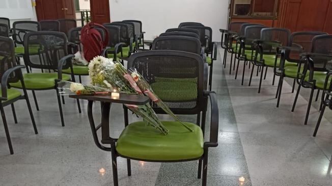 La Universidad La Gran Colombia, donde Karolay estudiaba derecho, suspendió las clases nocturnas del viernes, tras los hechos de los que fue víctima la joven, además, pusieron flores y velas en su salón de clases.