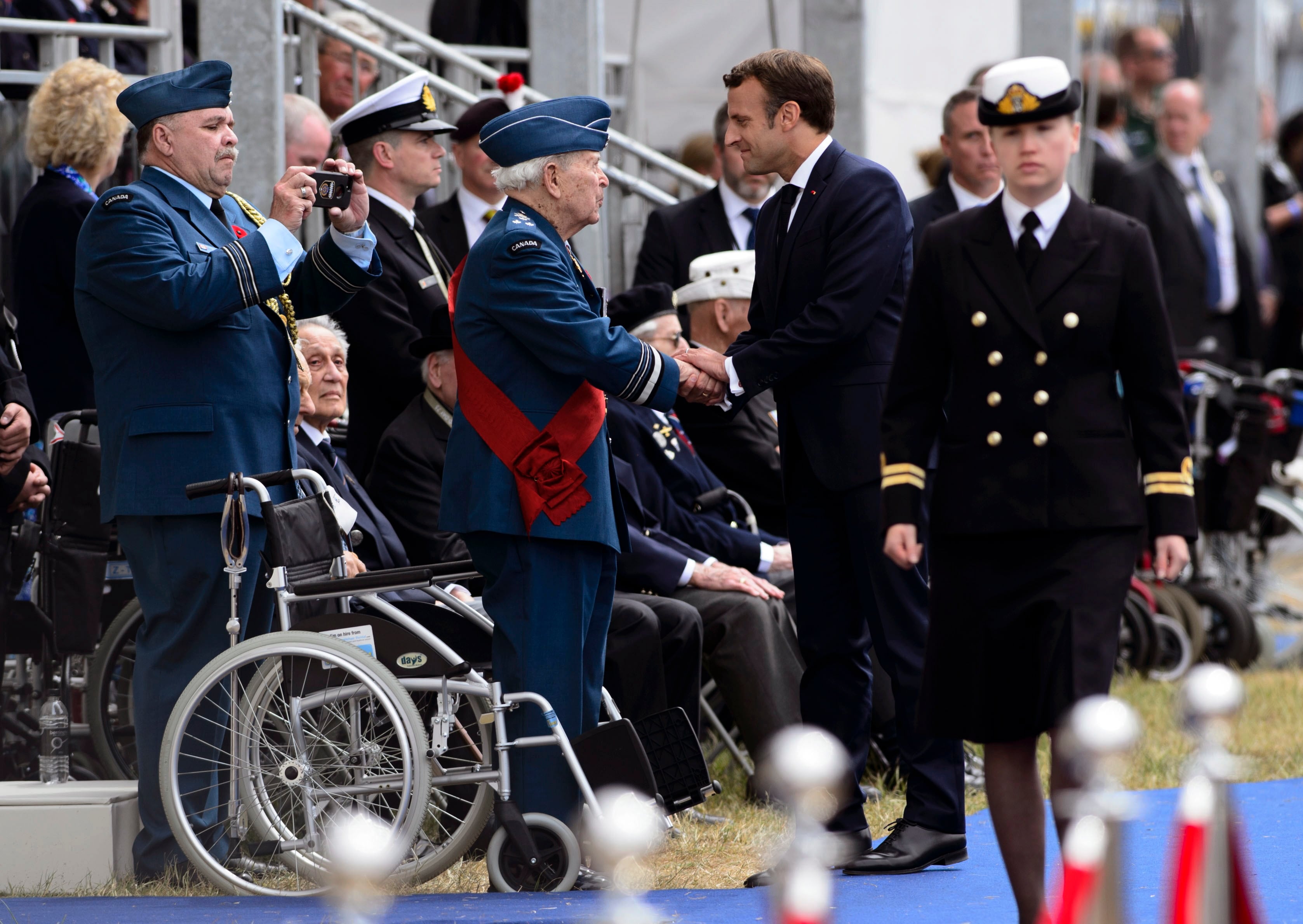 Tampoco faltaron los homenajes musicales, desde una banda de la guardia real británica con sus altos sombreros de pelo de oso negro, hasta la coreografía de un rock and roll al mejor estilo de Hollywood, pasando por El canto de los partisanos, himno de la resistencia francesa durante la ocupación alemana.