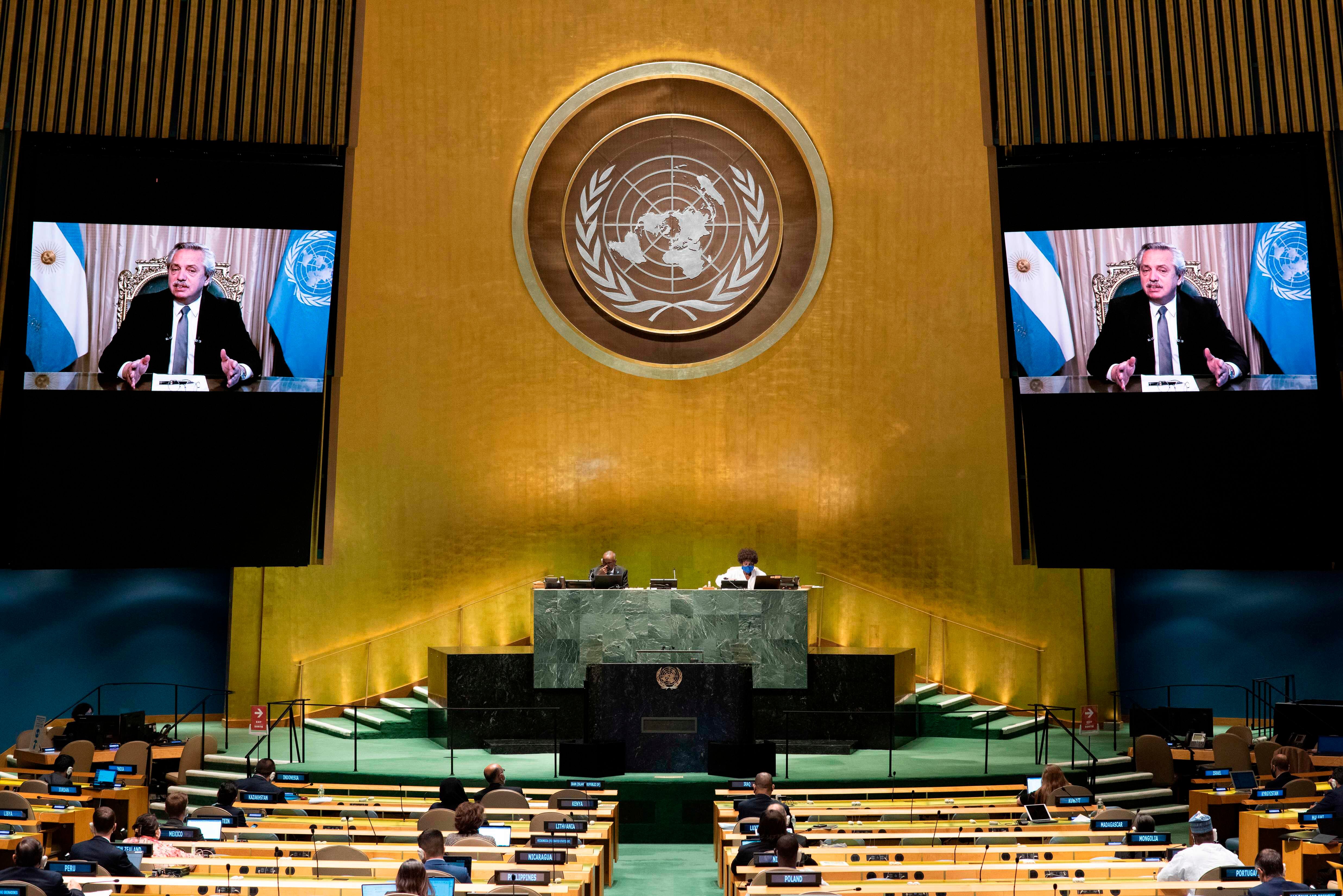 Los presidentes de Argentina y Perú pidieron en la ONU que la vacuna y el tratamiento contra el virus sean declarados "bienes públicos globales", accesibles para todos.