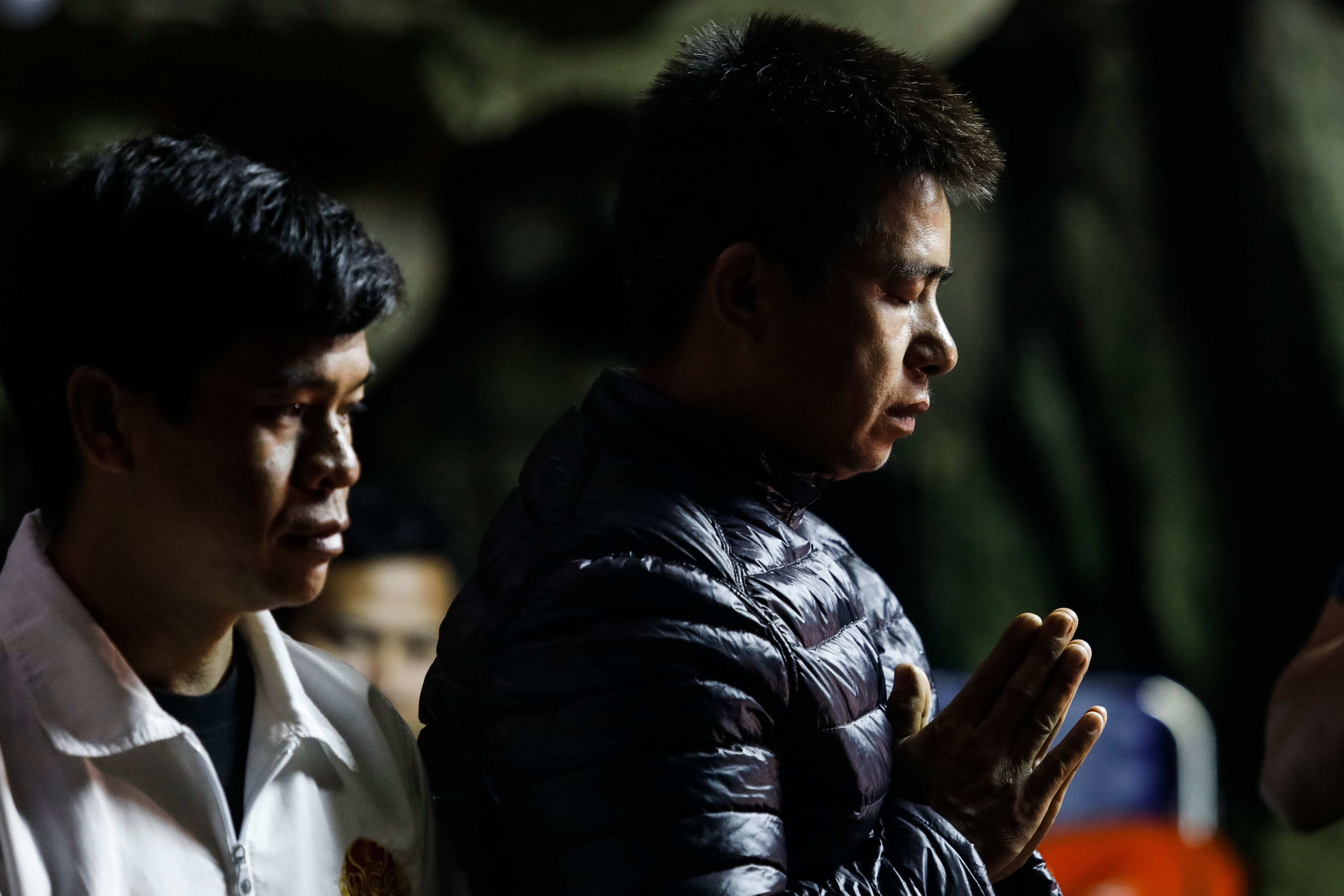 A pocos metros del lugar, los padres de los 12 niños atrapados organizaron plegarias.