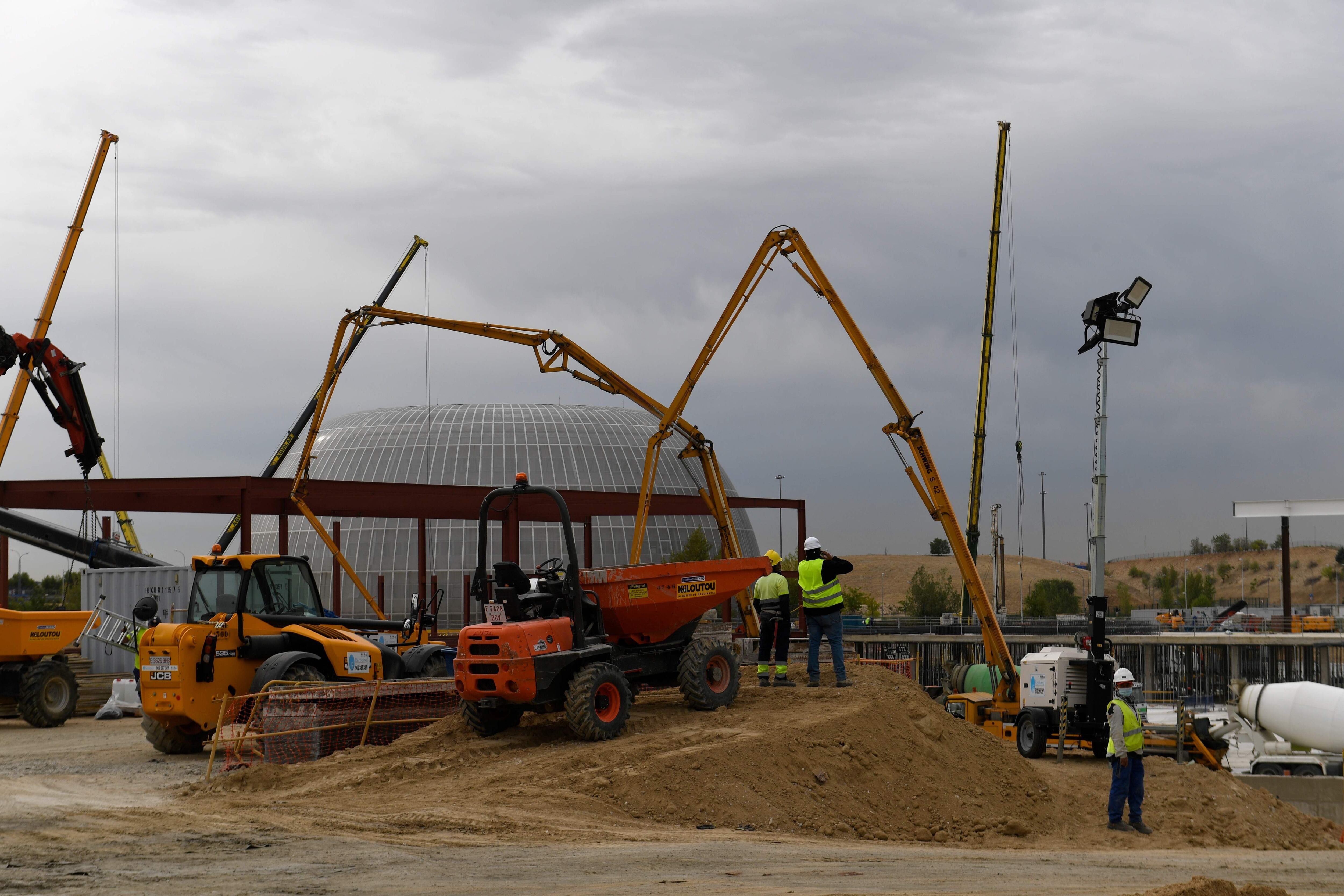 Las hormigoneras giran a toda máquina, las mangueras escupen litros y litros de cemento y los soldadores hacen saltar las chispas de las altas columnas que componen el esqueleto del edificio.