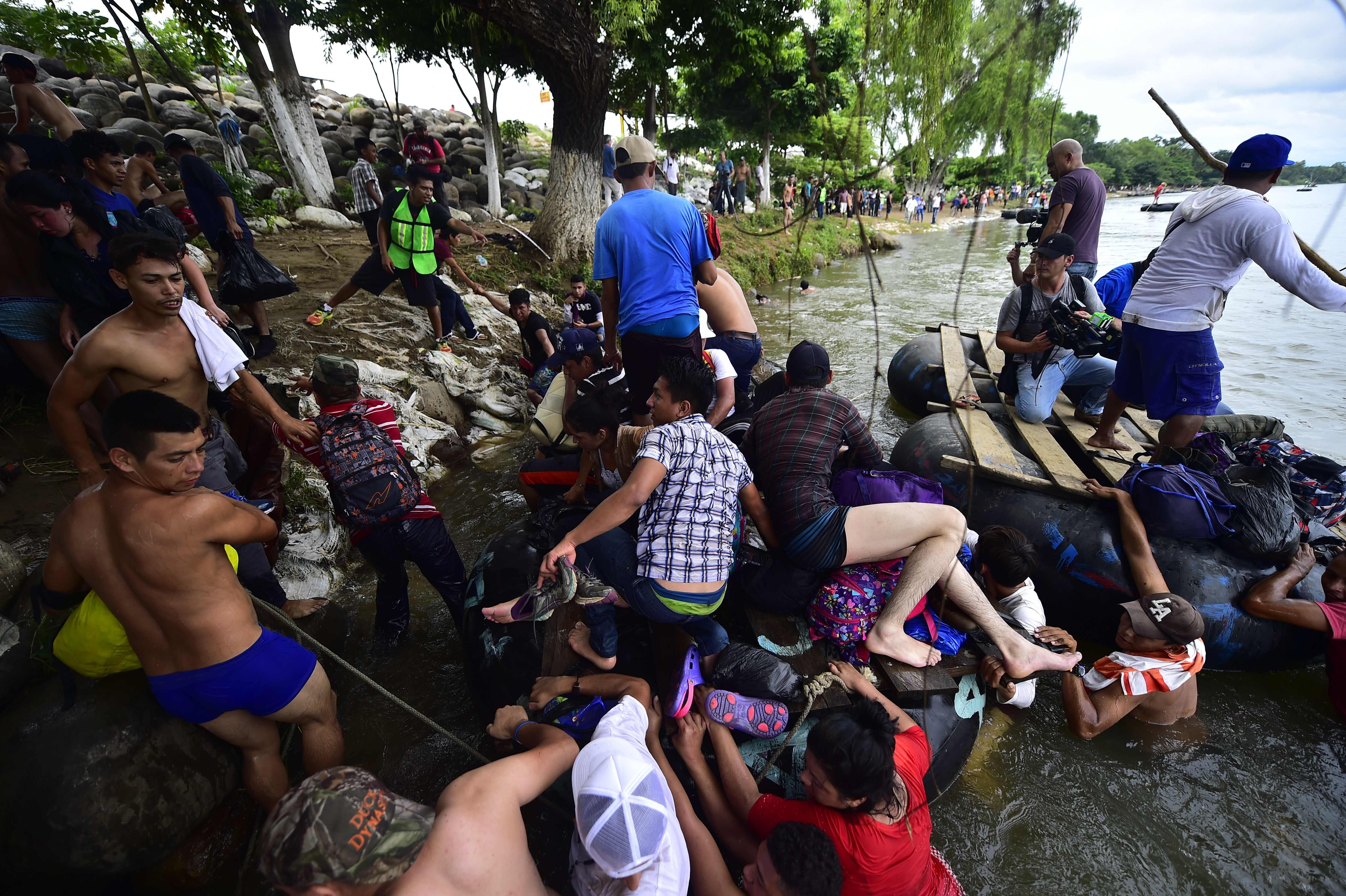 El cúmulo de migrantes en el puente, que autoridades mexicanas estimaron entre 2.500 y 5.000 personas, se iba reduciendo, según constató la AFP, debido a la decisión de muchos de intentar cruzar el río Suchiate usando precarias balsas hechas con neumáticos, método habitual de quienes cruzan la frontera ilegalmente.