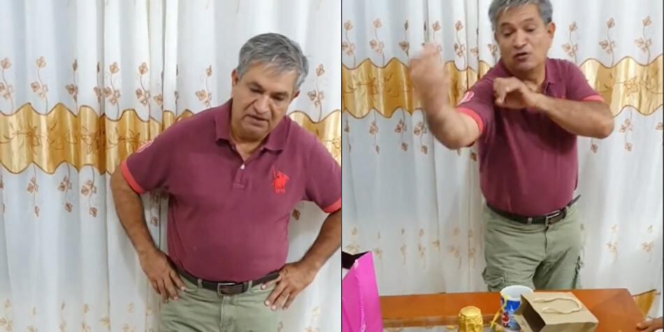 “Si todos nos pusimos de acuerdo con que eran regalos mínimo de 500 pesos (mexicanos) yo esperaba algo distinto, pero me están dando una taza”, reclamó el señor en el primer video que relata la escena completa de su molestia a través de la cuenta de Tik Tok del usuario @choco_juancho_hijo.
