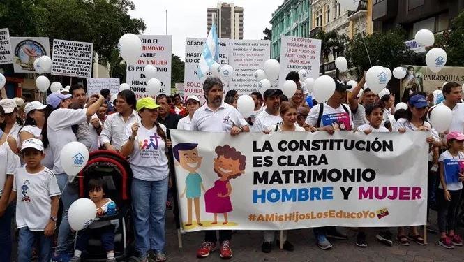Guayaquil. Miles de fieles católicos del puerto de Guayaquil marcharon este sábado en defensa del matrimonio entre hombre y mujer tras un fallo de la Corte Constitucional de Ecuador que dio paso a las bodas entre personas del mismo sexo.