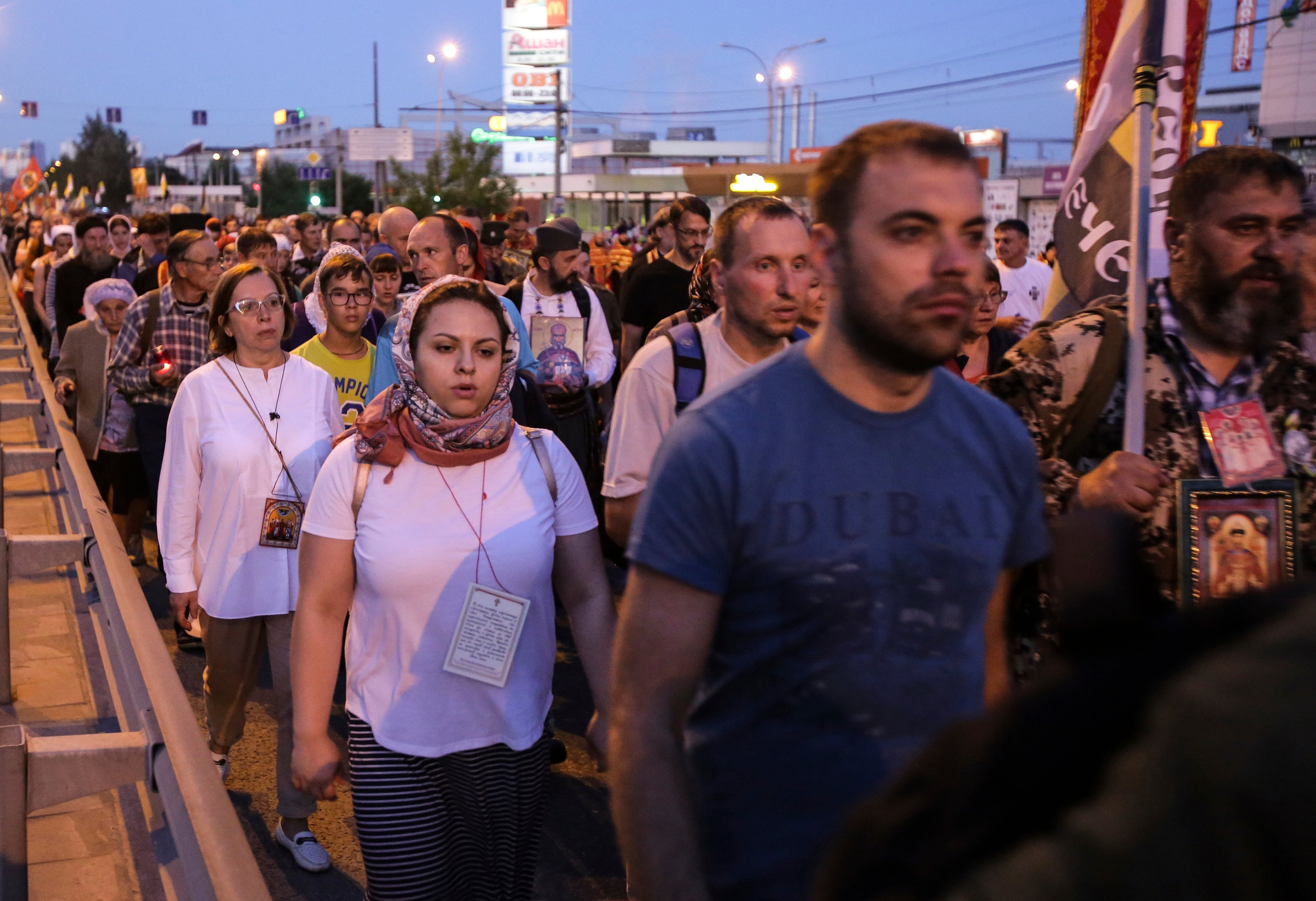 Los peregrinos llevaban cruces ortodoxas, ímágenes y retratos del zar y de los miembros de la familia imperial asesinados. Salieron a pie a las2 a. m. del lugar donde se produjo la ejecución, en Ekaterimburgo, y terminaron en el monasterio de Gánina Yama, situado a 21 kilómetros de allí, entonando oraciones.