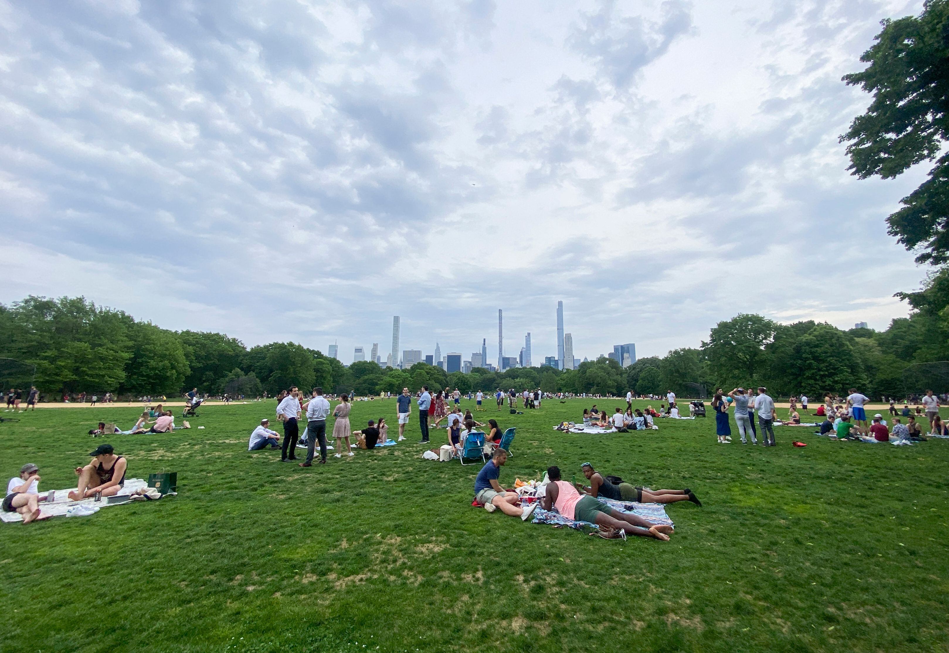 Por la seguridad de sus invitados, “casi todos” completamente vacunados, organizó la reunión afuera, en Central Park, con mesas y sillas plegables, globos sujetados de los árboles y comida para alimentar a un ejército.
