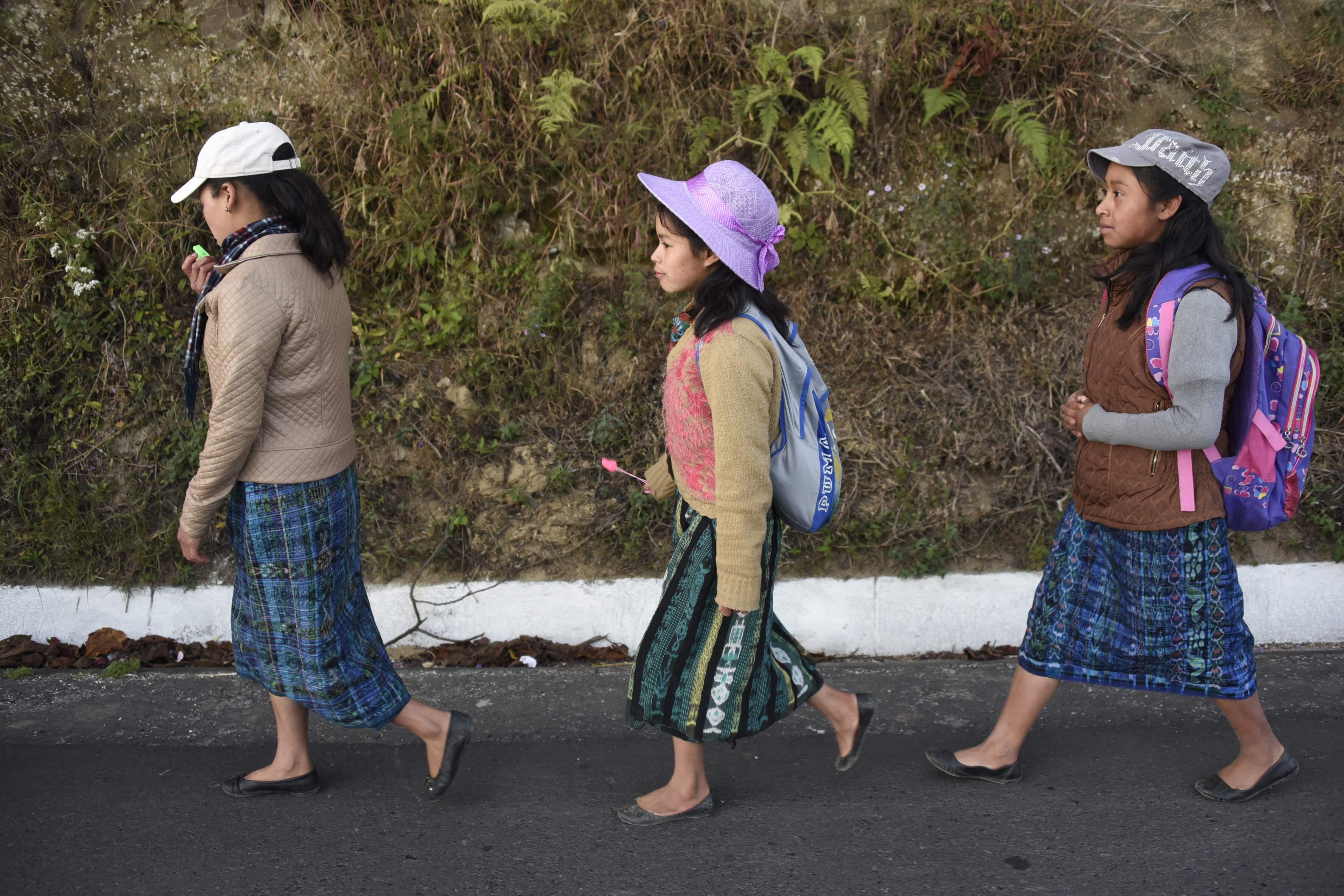 Las niñas emprendieron la caminata por carretera hacia el centro de Ciudad de Guatemala para llamar la atención por la tragedia que conmocionó al país el 8 de marzo de 2017, observó un fotógrafo de la AFP.