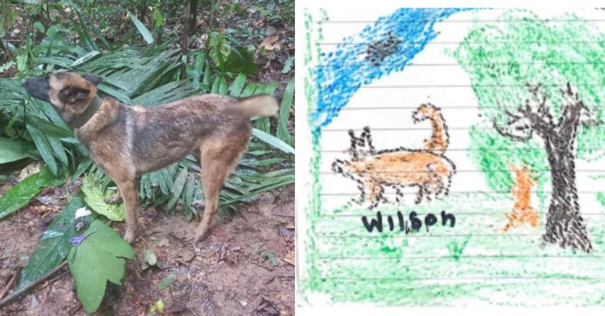 Los cuatro niños colombianos que fueron rescatados luego de estar durante 40 días en la selva no se olvidan de Wilson, el perro de las Fuerzas Armadas de Colombia que fue clave para el hallazgo de los menores. Uno de los dibujos que ellos hicieron el fin de semana en el hospital demuestra que el pastor belga sigue en sus pensamientos.