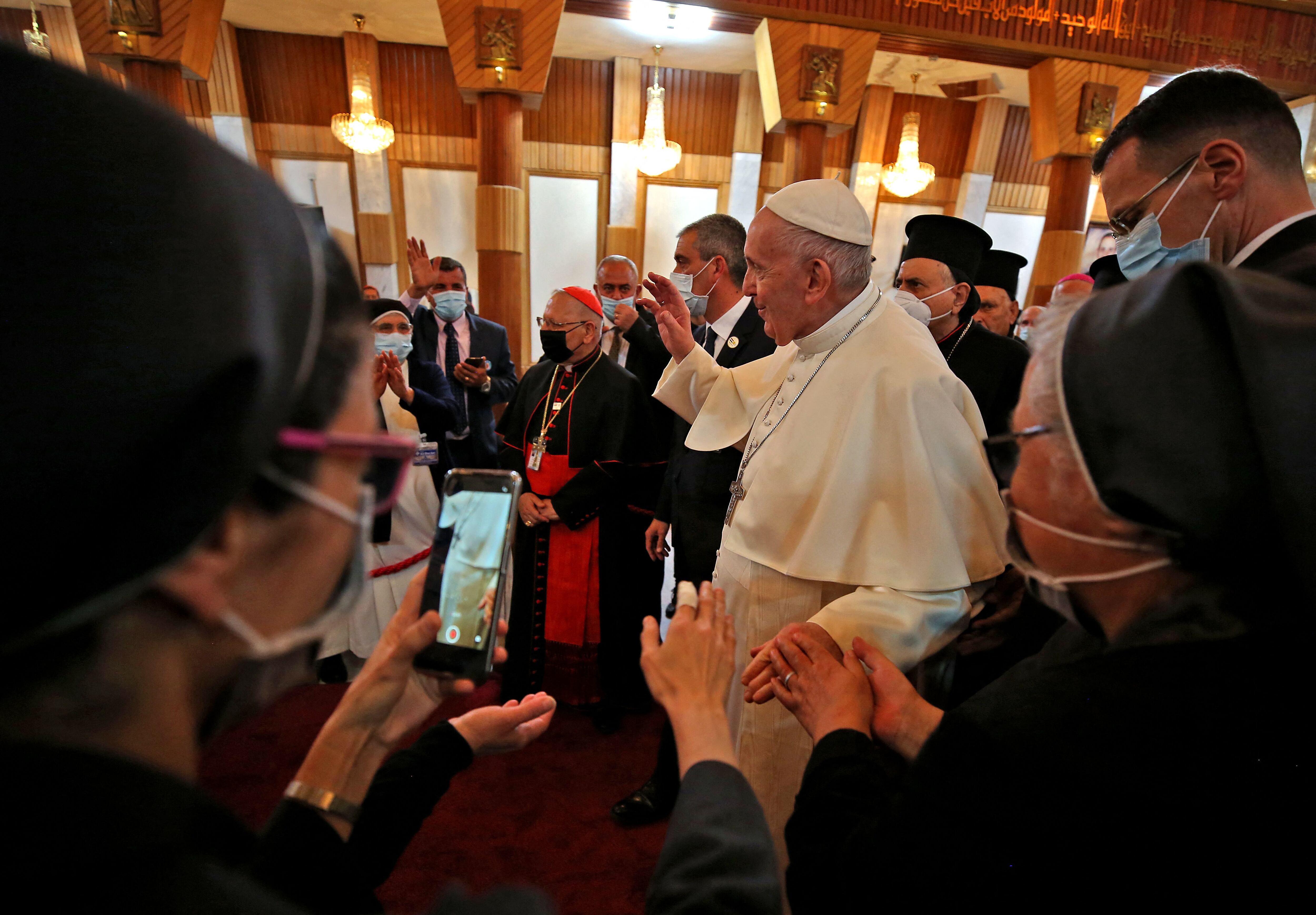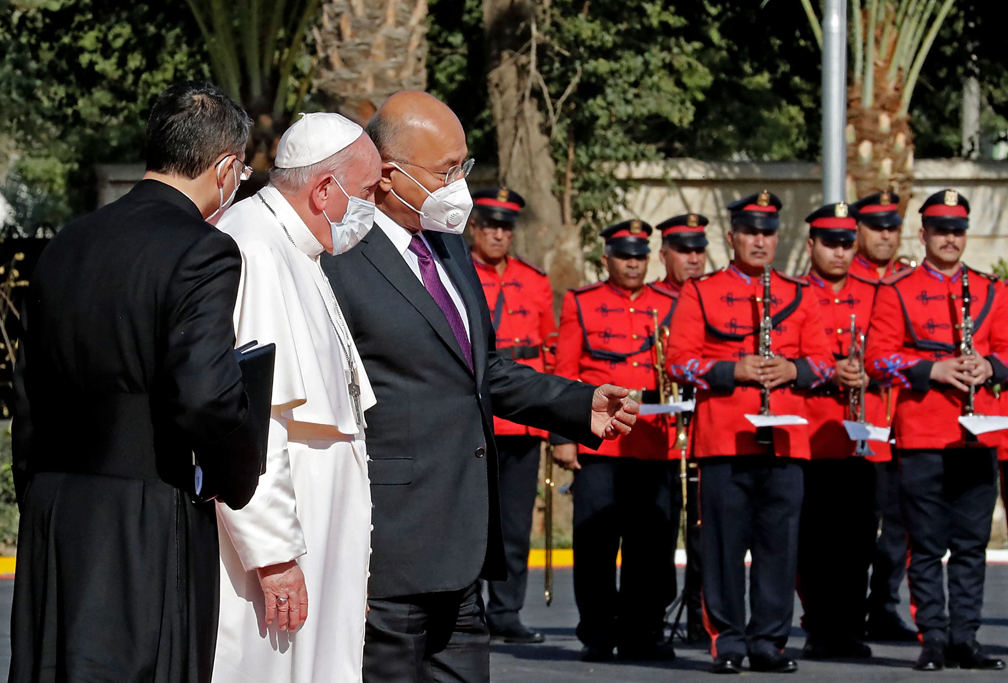 El jefe de los 1.300 millones de católicos del mundo evocó todos los asuntos candentes en Irak ante sus principales dirigentes, entre ellos el presidente Barham Saleh, quien le envió una invitación oficial para esta visita sin precedentes.