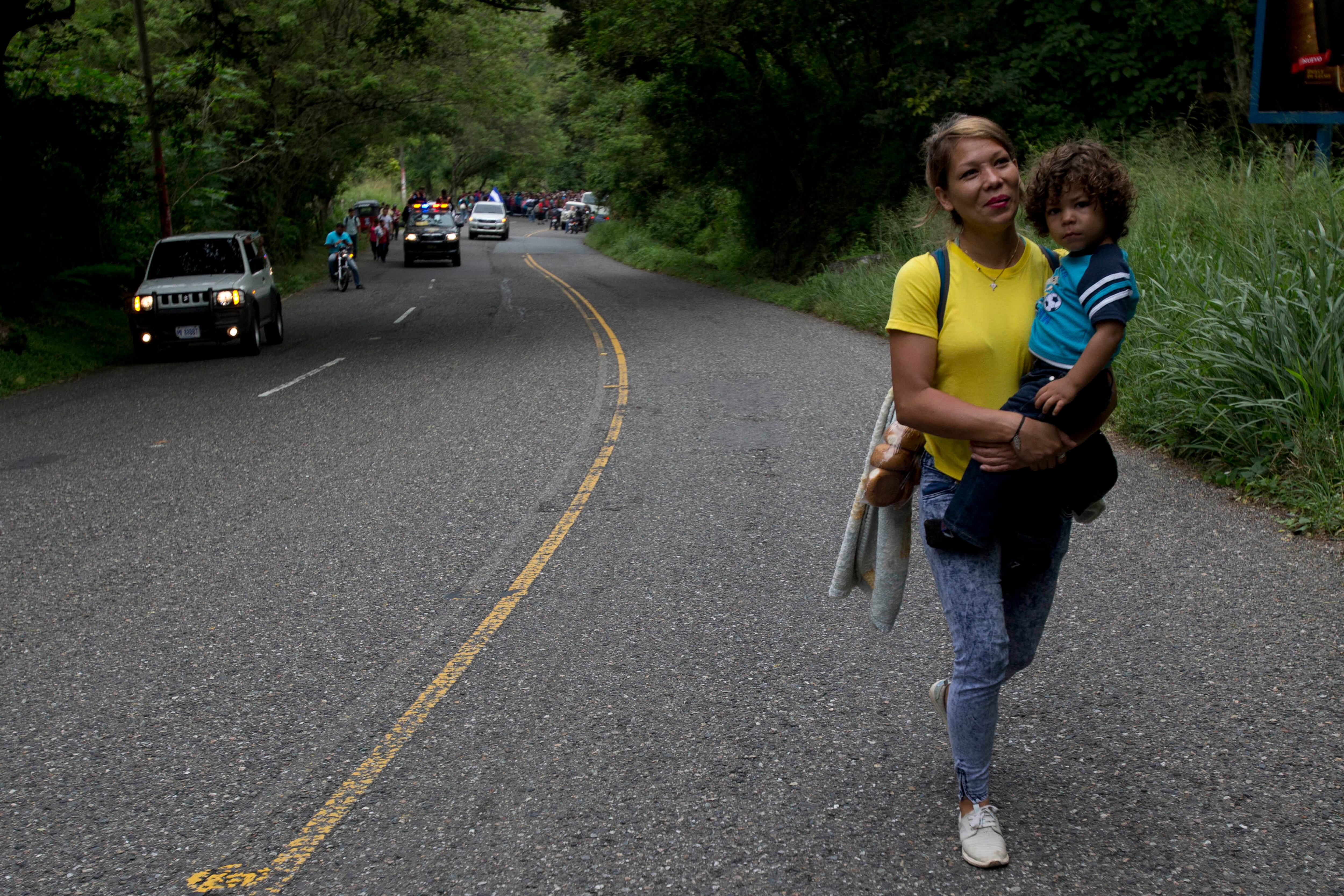 Empujando carros, niños, mujeres, hombres y ancianos avanzaban escoltados por patrullas de la Policía de Guatemala. La solidaridad era manifiesta: primero avanzaban las mujeres y los niños, algunos gritaban cuando un carro se detenía y otros acudían en ayuda de las mujeres que se habían cansado de llevar a los pequeños en brazos. Algunos guatemaltecos les acercaban agua, comida y caramelos.