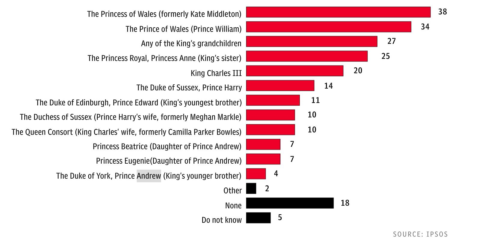 Princesa Kate Middleton se consagra como la royal más querida ¿quién es el menos popular?