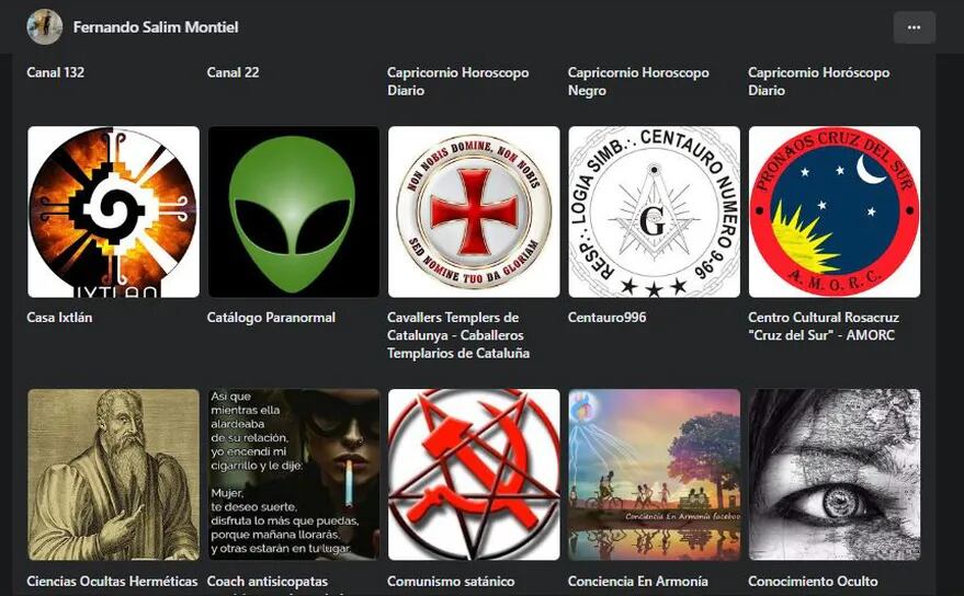 Entre otras páginas, el sujeto sigue a varios sitios que se presentan como “logias” u “órdenes masónicas”. Entre otras, le ha dado like a páginas como “Comunismo satánico”, “ciencias ocultas herméticas” y “coach antisicopatas”. También hay otras que aluden a la creencia “Wicca”, una religión neopagana, a la que se le atribuye vínculos con la brujería y otras religiones antiguas.