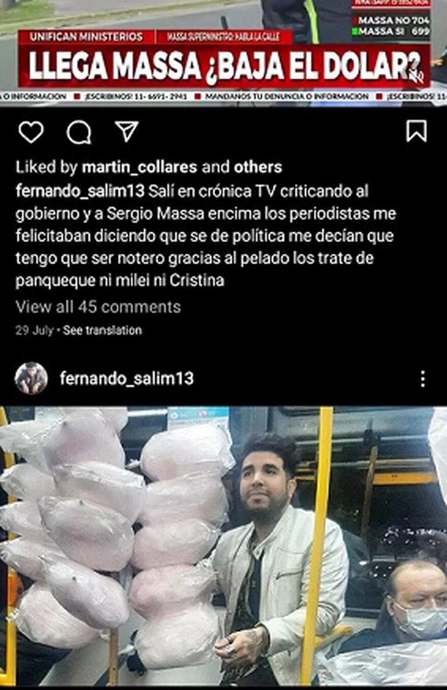 “Salí en Crónica TV criticando al Gobierno y a Sergio Massa encima los periodistas me felicitaban diciendo que sé de política, me decían que tengo que ser notero, gracias al pelado los traté de panqueques ni Milei ni Cristina (sic)”, comentó junto a la publicación del video.