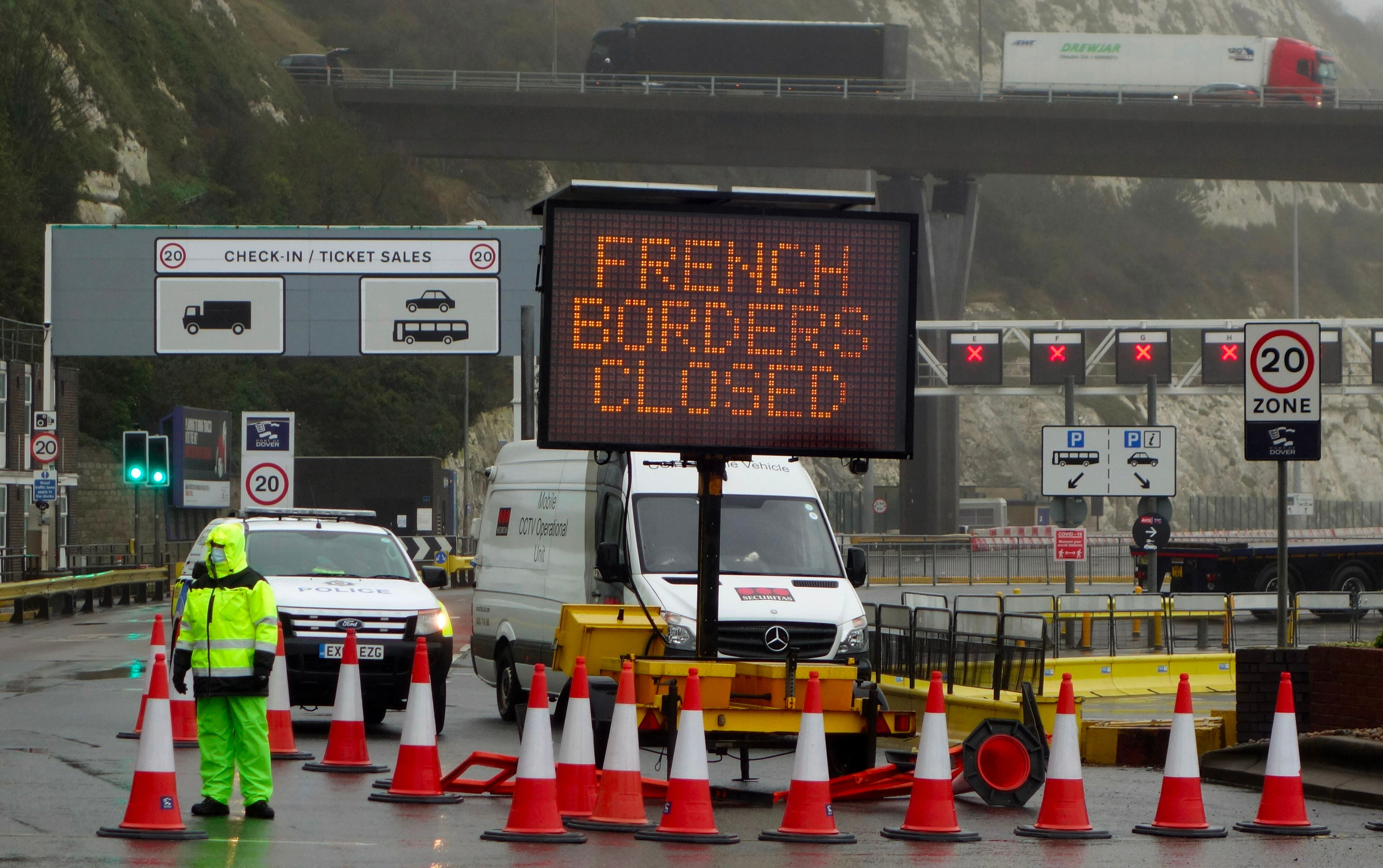 Desde la mañana, carteles en las autopistas del sur de Inglaterra alertaban a viajeros y transportistas del cierre de la frontera con Francia, que la noche anterior decidió suspender todos los enlaces por tierra, mar y aire con el país durante 48 horas.