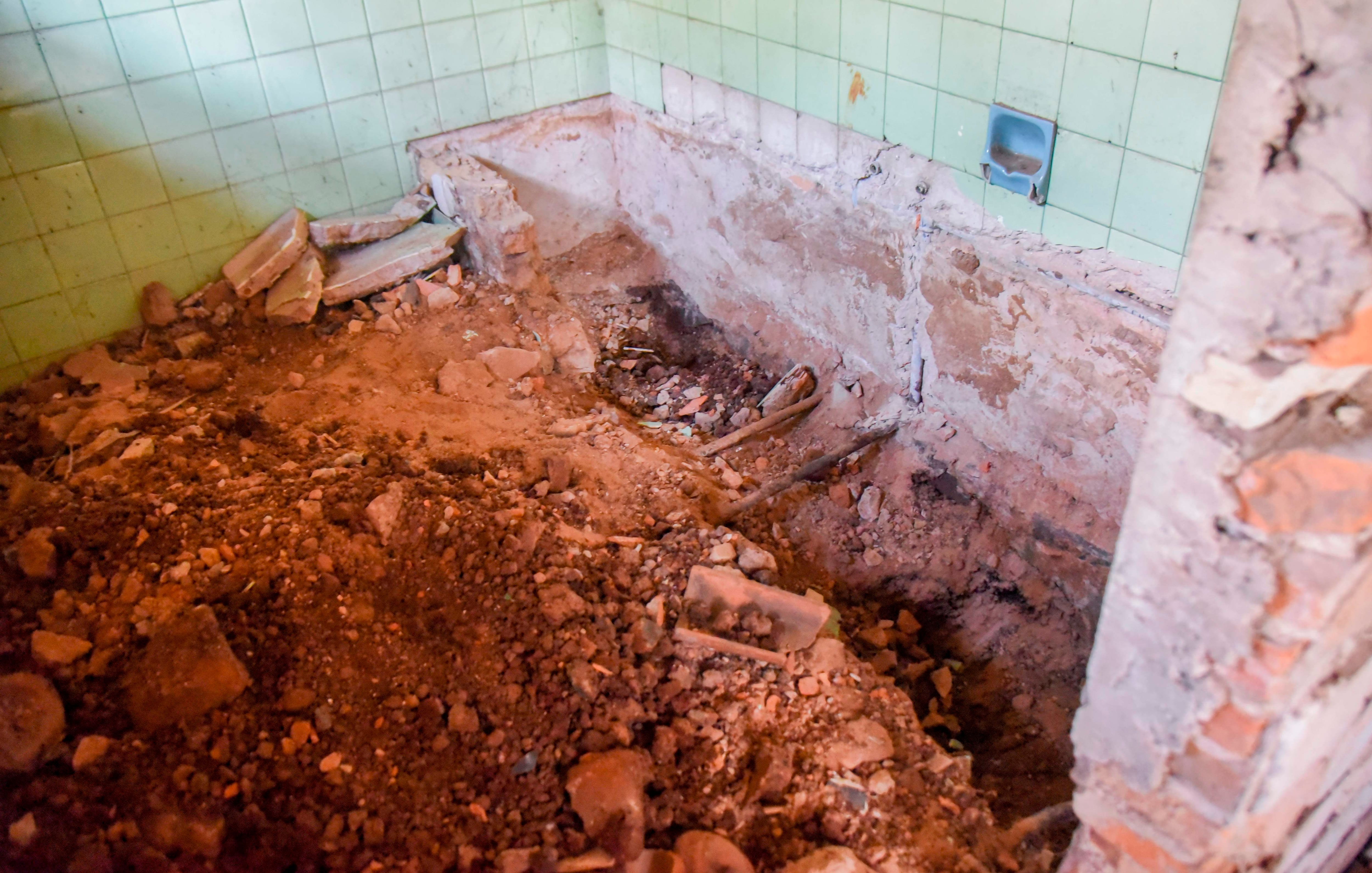 “Descubrimos un túnel que está rellenado con escombros. Nos dijeron que tiene como 100 metros de longitud y que termina en una fosa donde hay más huesos”, denunció Rafael Esquivel, un exfuncionario municipal, portavoz de los ocupantes de la casa.