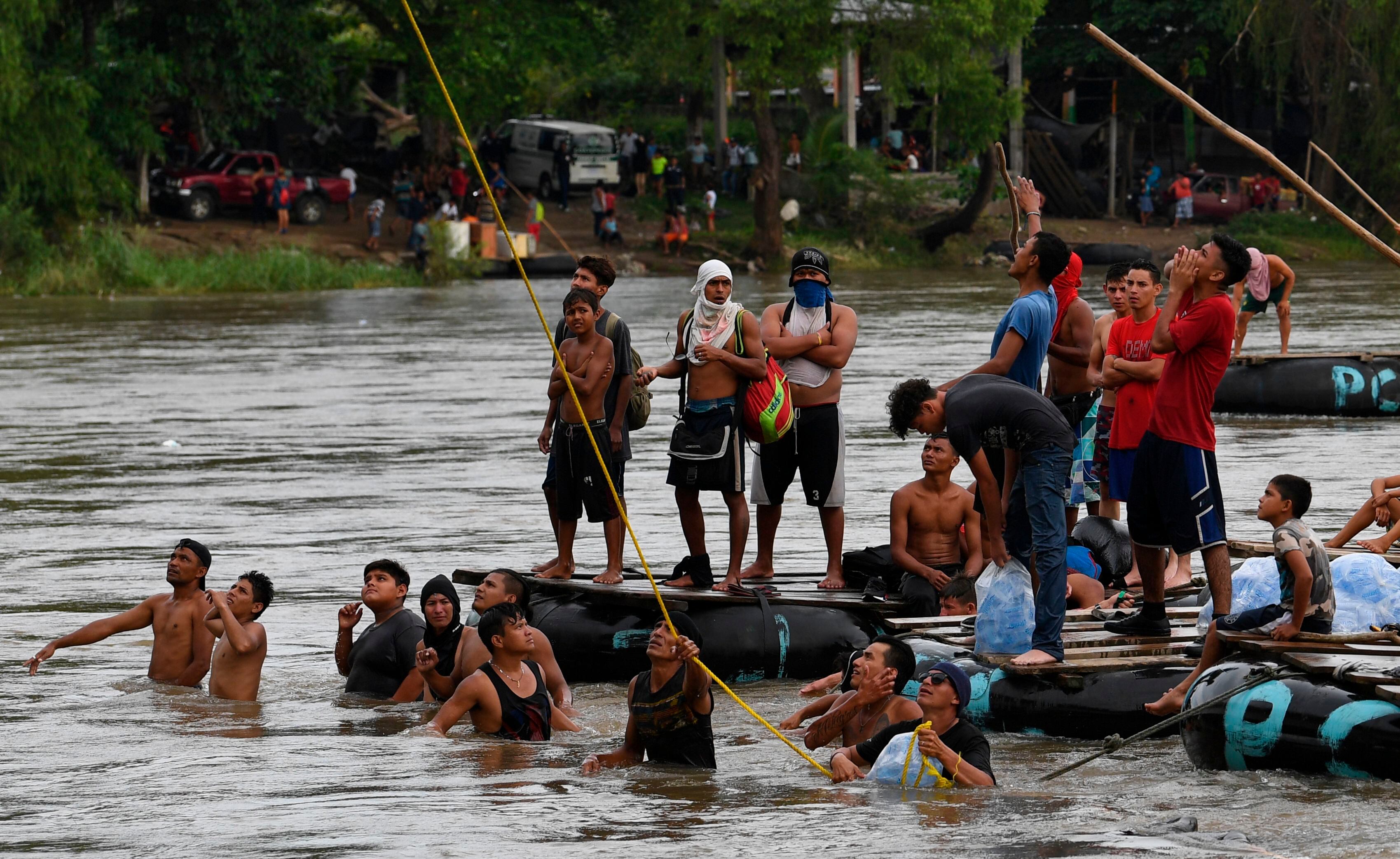 Miles de migrantes hondureños salieron en caravana de su país el sábado 13 de octubre con el fin de llegar a Estados Unidos superaron este viernes un bloqueo de policías y militares en Guatemala y lograron llegar a México, tras enfrentar tensiones en los puestos fronterizos.