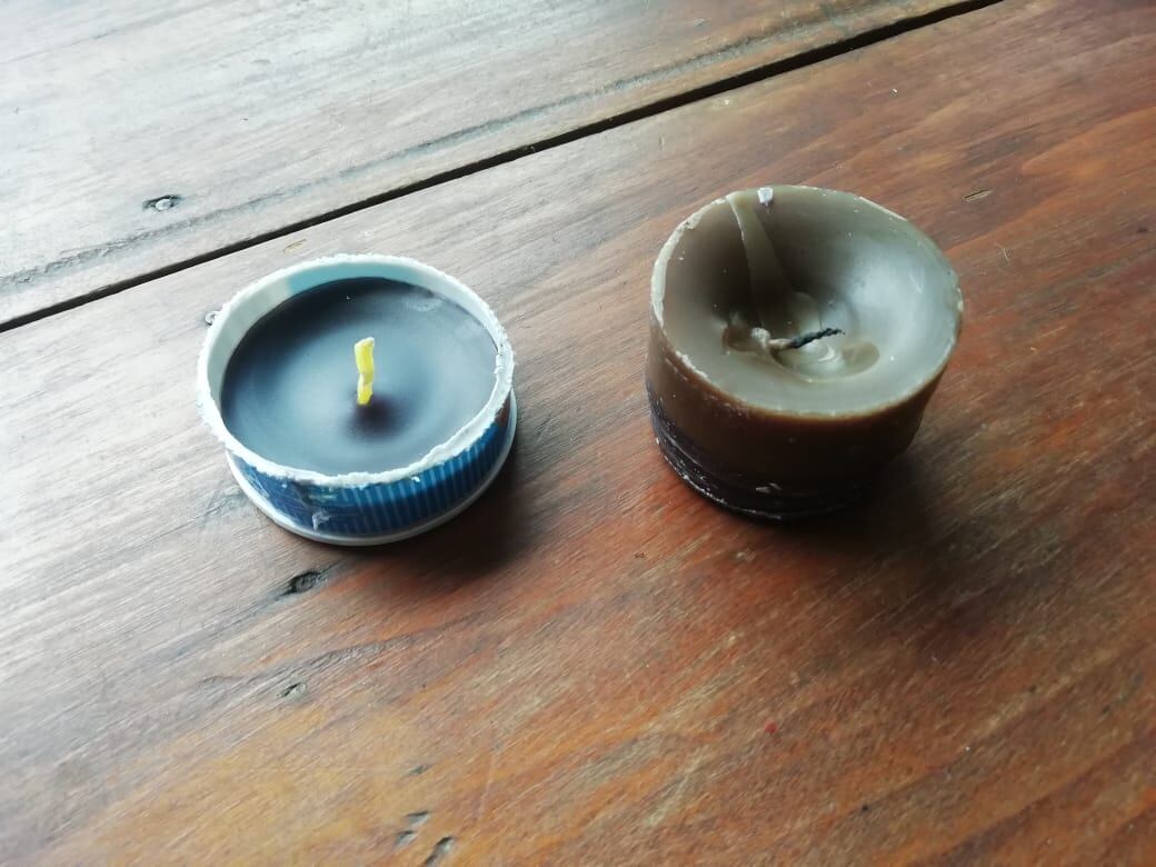 En la primera noche gastamos muchas candelas porque pensábamos que ya vendría la energía. Como mi pareja salía temprano y llegaba tarde de su trabajo y yo no podía darme el lujo, recién operado, de bajar y subir 10 pisos por las gradas y caminar hasta un supermercado a comprarlas, entonces opté por reciclar y fabricar mis propias candelas.