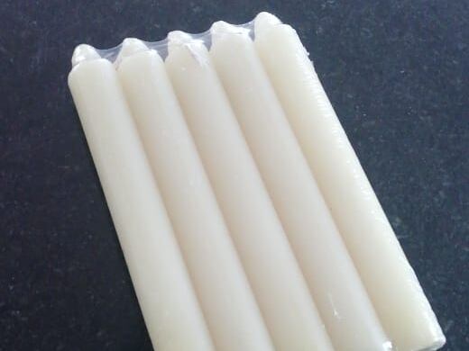 Sin ver YouTube, porque no había Internet, tomé toda la parafina endurecida de las candelas usadas y las puse a derretir en baño maría. ¿Con qué hago la mecha?, me pregunté. En eso vi el palo de piso, entonces corté una hebra, la unté de parafina y la aseguré en un extremo con una latita. Busqué un molde de plástico, coloqué la mecha y chorrié la parafina caliente. Dejé enfriar y me quedó una hermosa candela multicolor, hecha en casa. La probé y como funcionó, hice otras.