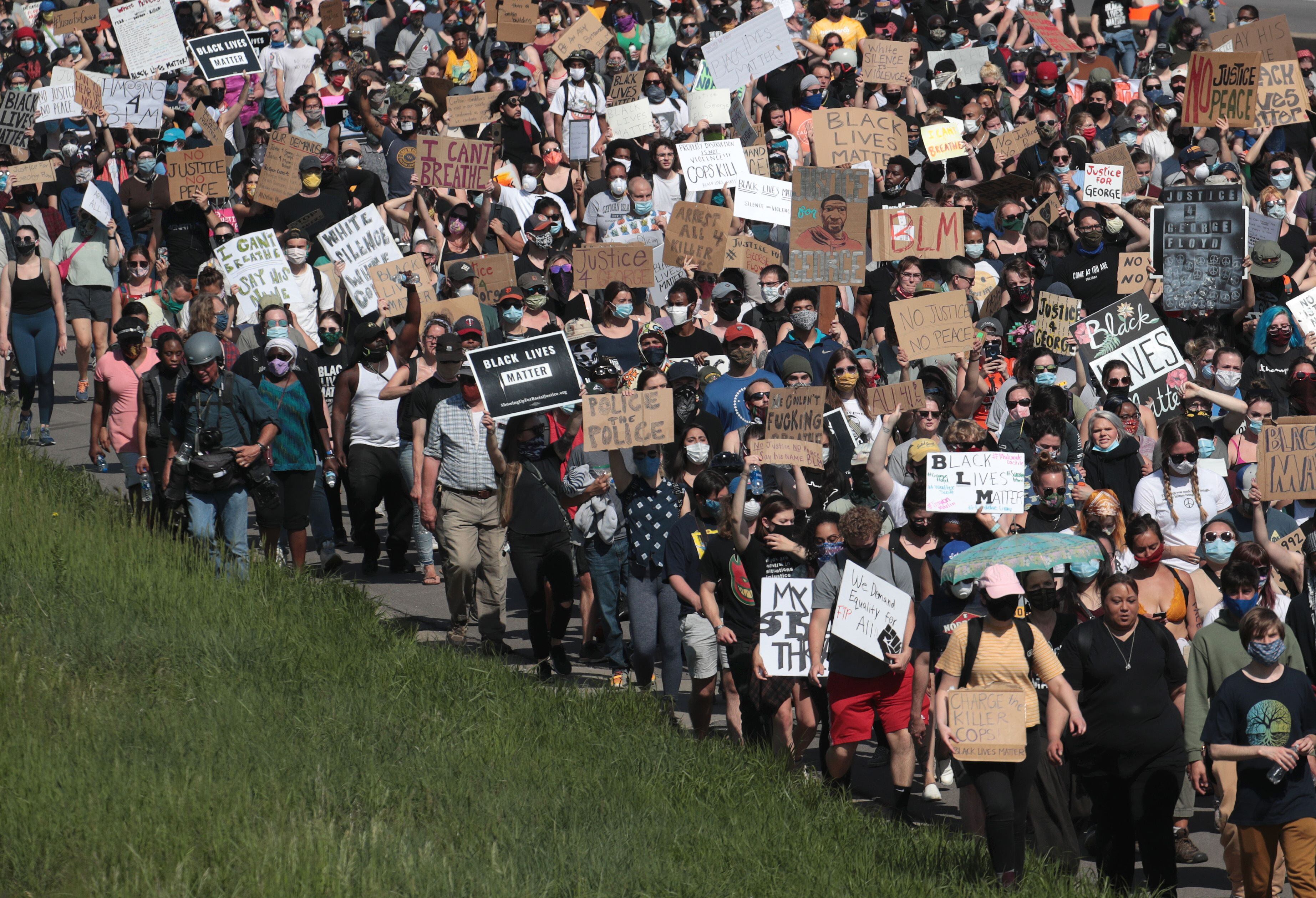 En Saint Paul, ciudad contigua a Minneapolis, miles de personas se manifestaron en la tarde del domingo contra el racismo y en reclamo de que todos los policías implicados en la muerte de Floyd rindan cuentas ante la Justicia.