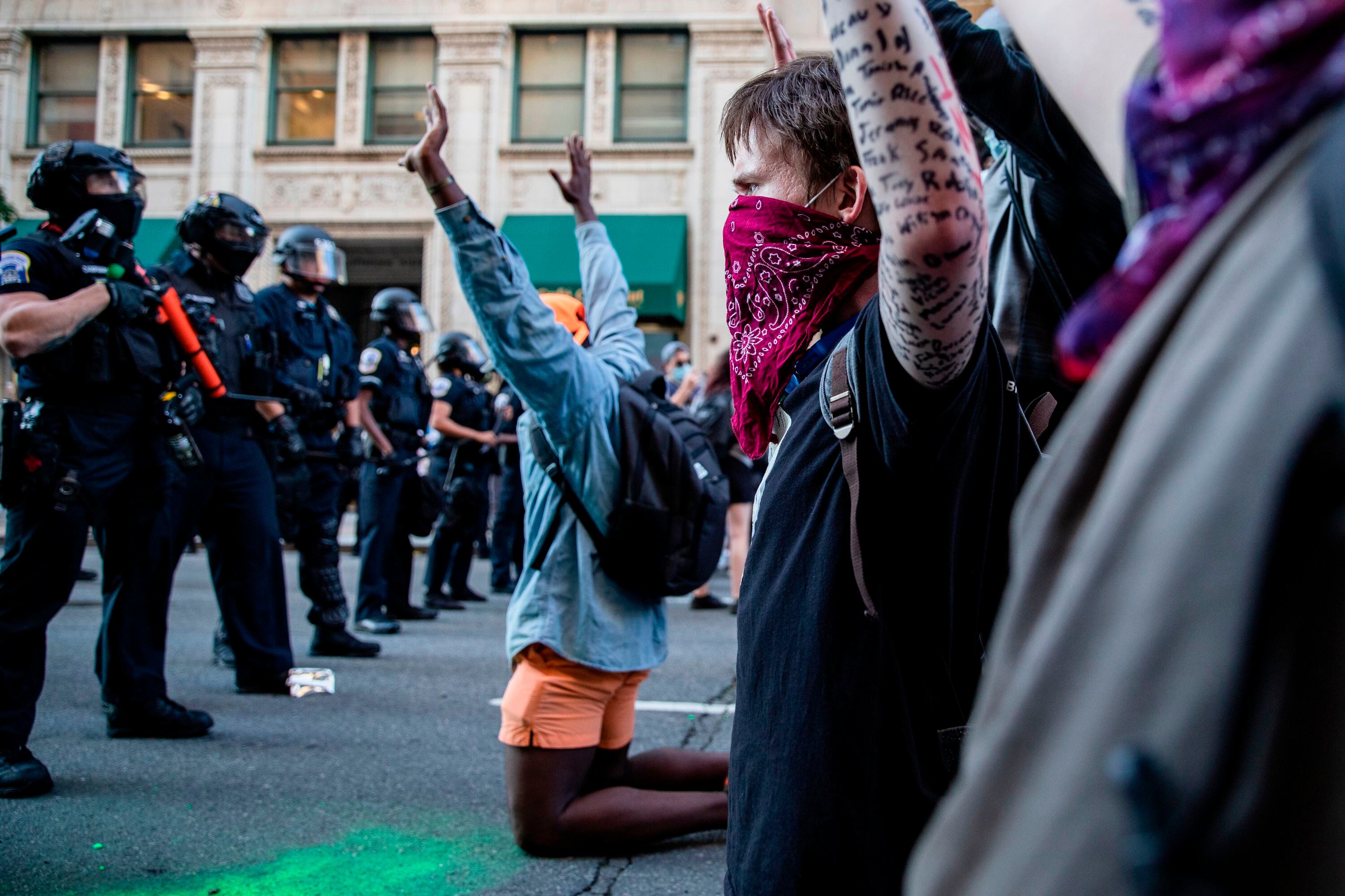 Otras manifestaciones estaban en curso en Washington, Miami y Nueva York. Black Lives Matter (“La vida de los negros vale”), “No puedo respirar” (las últimas palabras pronunciadas por George Floyd) son las consignas más coreadas en las protestas.